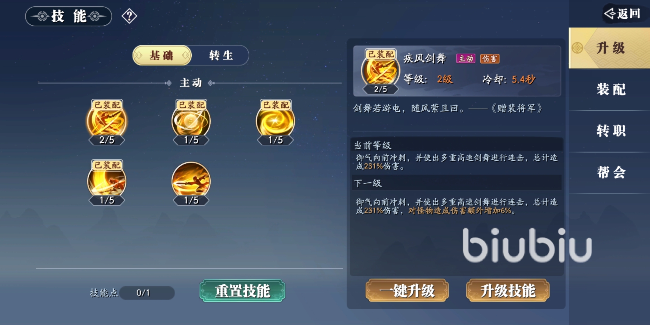 玩家在前期學習技能后,可以在技能這一欄中裝配自己比較熟練的技能,在之后通過技能的升級可以提升戰(zhàn)力,每個技能能夠提升的最高等級為五級,升級技能需要的材料是技能點。