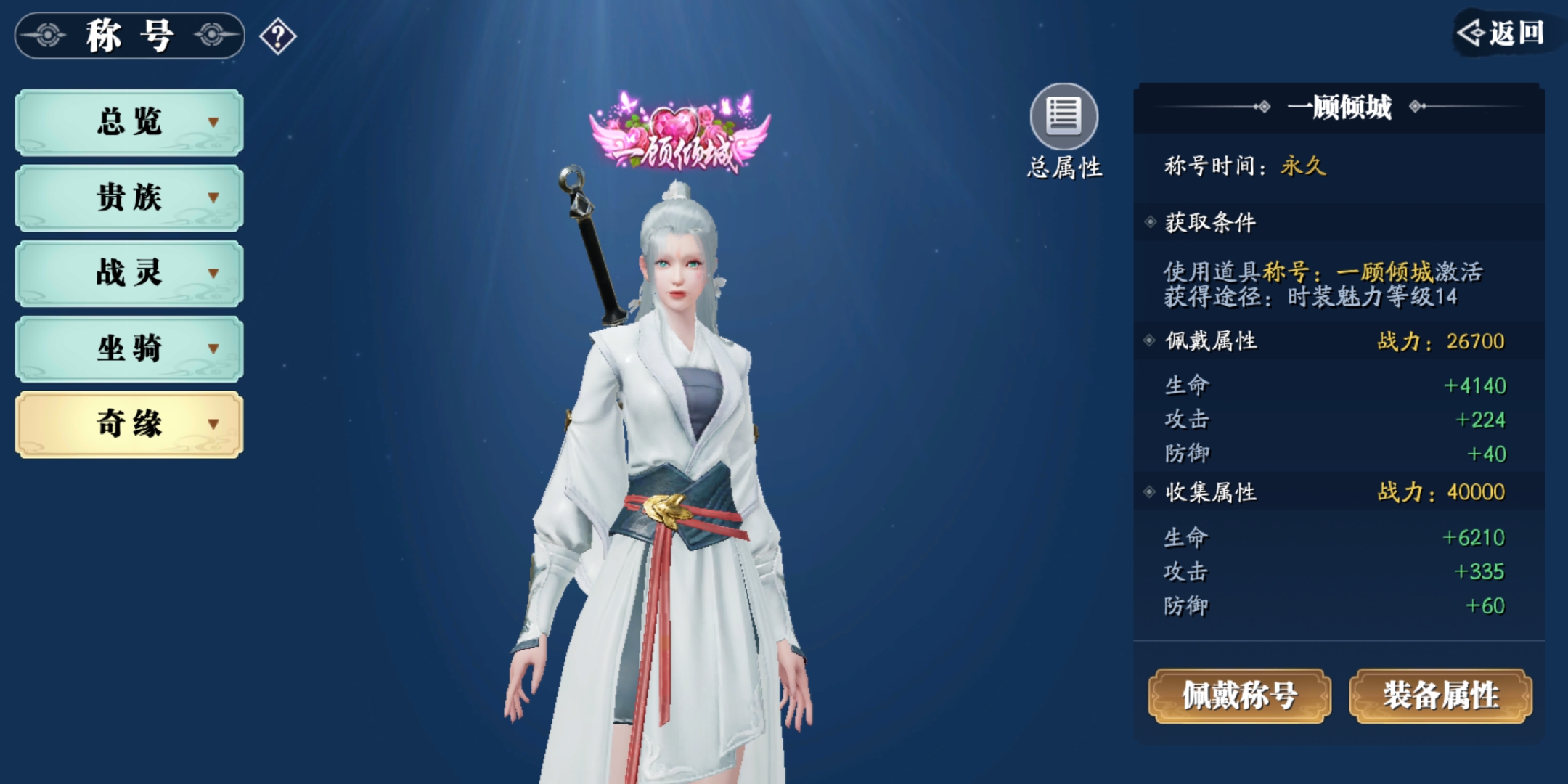 激活稱號后,玩家點擊右下角處的稱號,將其佩戴,可以提升一定的戰(zhàn)力。稱號也是存在等級的,一般奇緣稱號的戰(zhàn)力是最高的,可以上萬。不過小編不是很建議大家使用稱號的方式提升戰(zhàn)力,稱號的解鎖是比較困難的,這個方法可以酌情考慮。