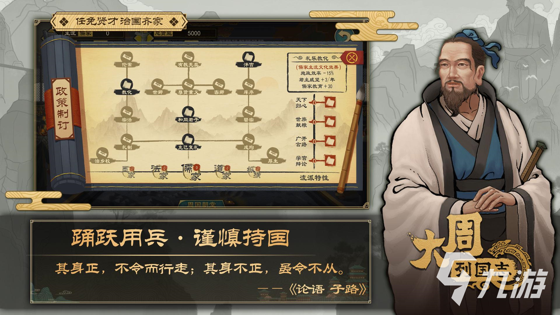 3、百家爭(zhēng)鳴:正如名字一樣,該游戲有著非常多的文化流派??梢詮奈幕?guó)政、人才三個(gè)方向進(jìn)行發(fā)展,盡可能體現(xiàn)多元素的特點(diǎn)。