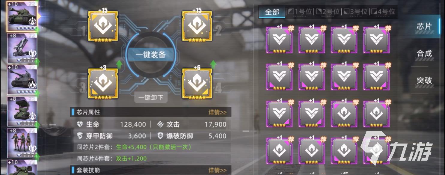 而芯片套裝的效果也是不一樣的,比如裝備了兩個(gè)同一套的芯片,就能提供五千四的血量加成;而如果帶了四個(gè),就能提供一千二的攻擊加成。