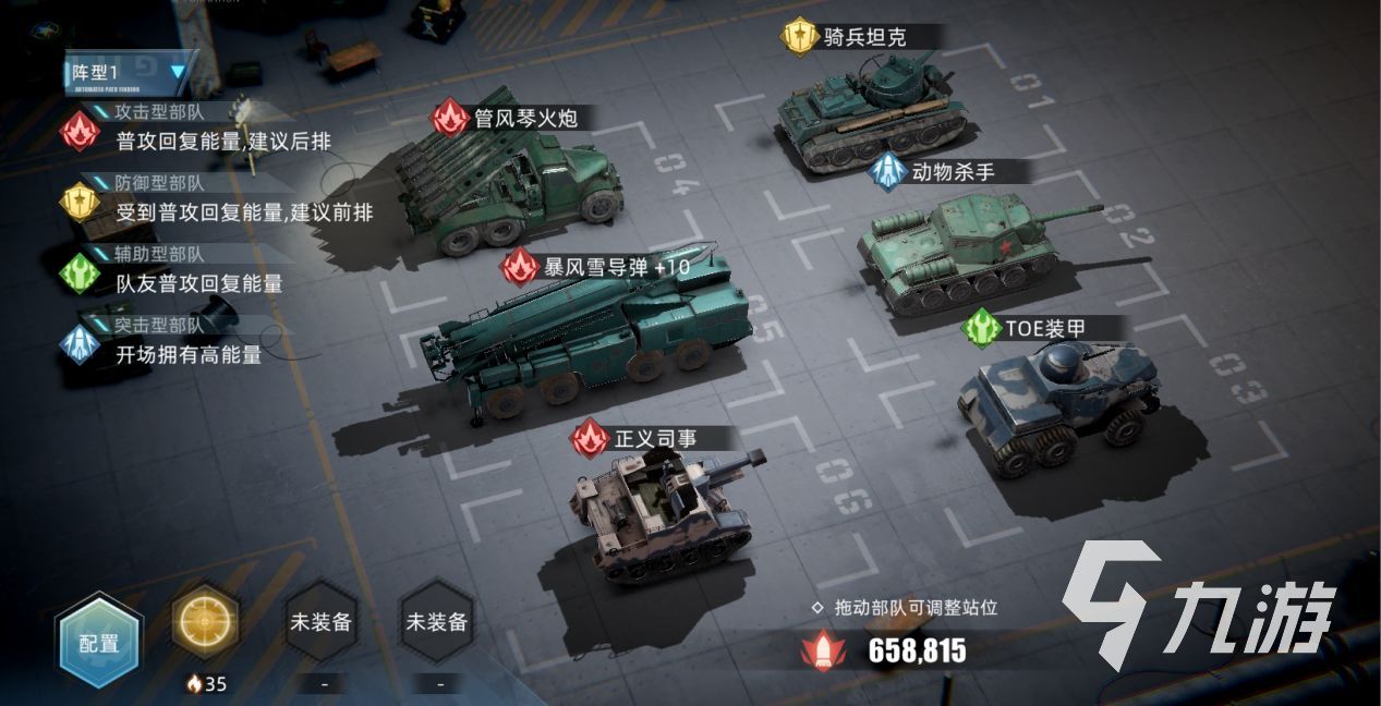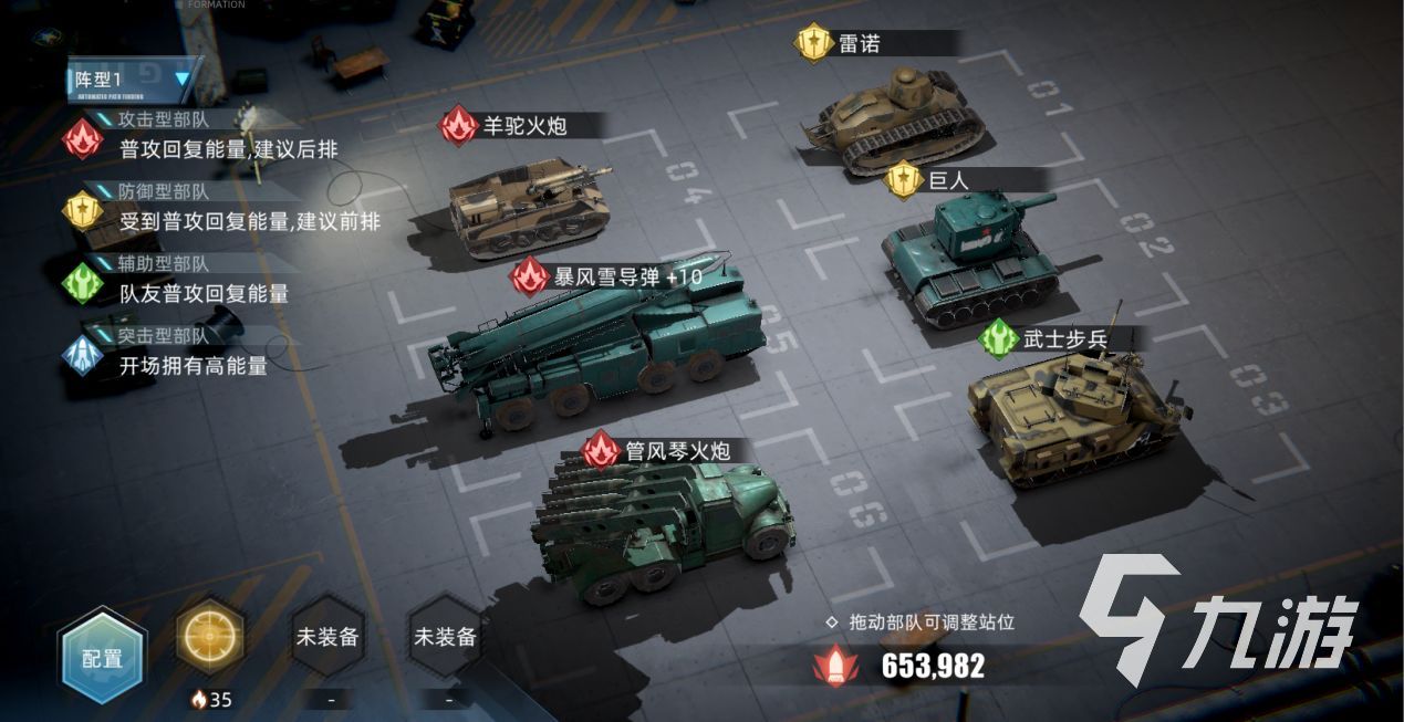 不多廢話,直接上陣容搭配圖,選擇火炮、導(dǎo)彈、正義司事、TOE裝甲、動物殺手、騎兵坦克。這個(gè)套陣容無論在pve還是pvp有著不錯(cuò)的強(qiáng)度,綜合數(shù)值還是挺高的。這套陣容是火炮導(dǎo)彈這2個(gè)隊(duì)伍作為核心,雙C帶來強(qiáng)大的AOE并且有著高爆發(fā)。地獄轟炸這個(gè)技能可以對全體敵人造成傷害的同時(shí)將“燃燒”這個(gè)效果引爆。而火箭炮的主動技能齊射同為AOE并且附加燃燒以及融化debuff。一個(gè)點(diǎn)火一個(gè)放炮,高傷害的還有穿甲(無視防御)和減療(降低敵人治療量)。