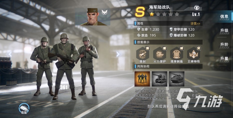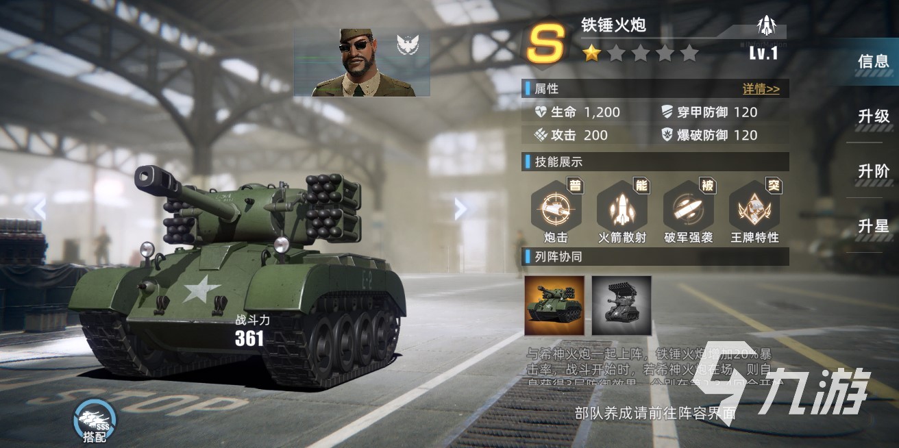 這次小編推薦的合眾陣營里有的坦克分別是海軍陸戰(zhàn)隊、狙殺者、希神火炮、送葬者、霍克一號、鐵錘火炮,下面來給你們詳細介紹一下這幾個坦克的效果和作用,第一個是陸戰(zhàn)隊,他的品質(zhì)為金色的,定位是輔佐類型的,普通攻擊為援射,可以快速發(fā)出多種子彈,主動技能是火力援護,能在頭部多出一個炮筒,對敵人進行毀滅性打擊,被動是增厚鋼盾,能提升全隊的護甲值,位置放在二號位,生命值在一千二百三十點,穿甲值在一百二十點,攻擊力在一百九十五點,破甲值在一百二十點。
