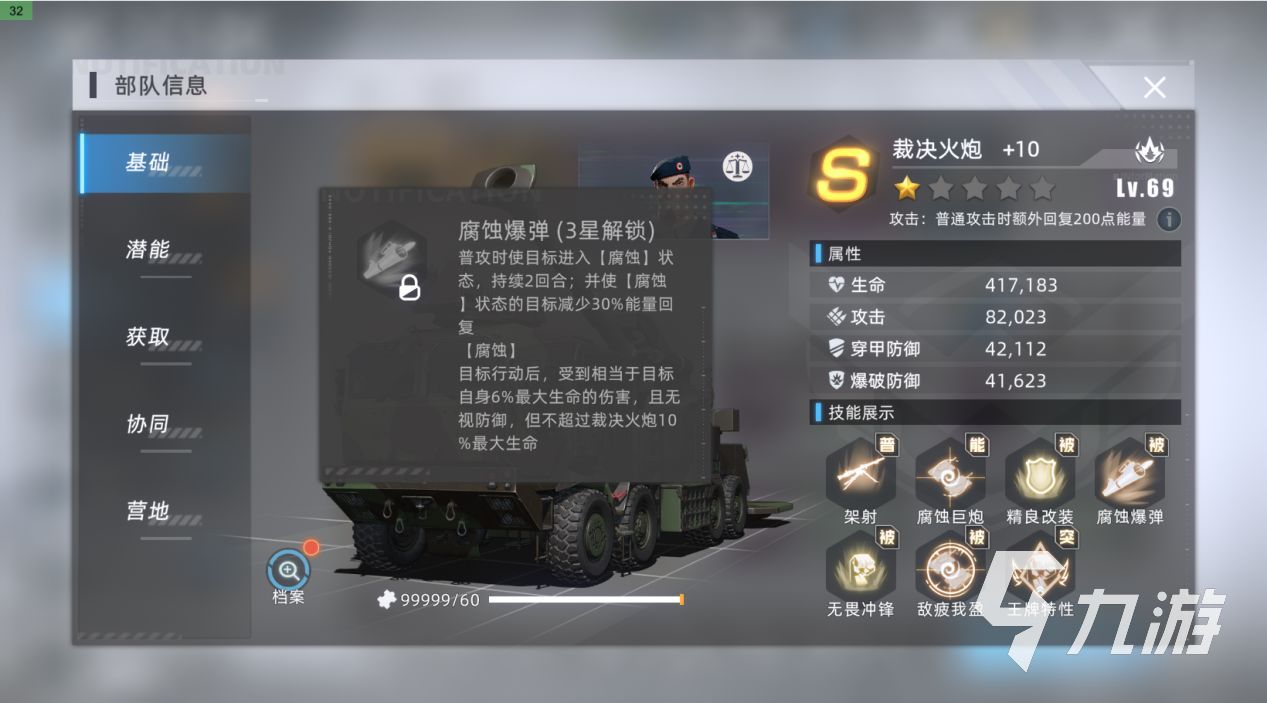 值得一提的是,裁決有一個腐蝕彈的技能,這個技能可以給敵人附加一個腐蝕的負(fù)面狀態(tài),這個腐蝕狀態(tài)是能夠直接無視防御的;與此同時,管風(fēng)琴則有一個高能轟炸的技能,這個技能則可以給敵人附加一個燃燒的狀態(tài),而且在打出能量技的時候,還可以將其附加的燃燒狀態(tài)進(jìn)階為熔化狀態(tài),同樣也是能無視防御的。這兩者一結(jié)合的話,對于敵人而言就是減療加減能的雙重打擊了,不僅能直接打掉敵人的防御,也能打掉對方的修復(fù)部隊(duì),如果對面正好是鐵盾隊(duì)的話,己方的這個隊(duì)伍就很有克制效果了。