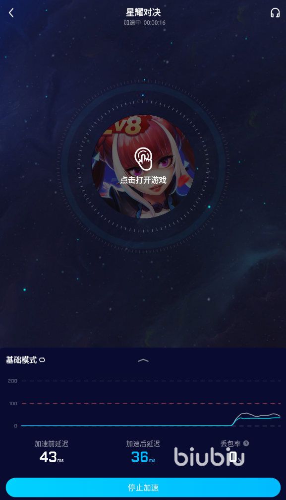 玩家在完成了所有的步驟之后,就可以正常開始游戲加速了,當游戲加速開始之后,玩家只需點擊加速界面中間的游戲圖標,就可以運行這款游戲了。