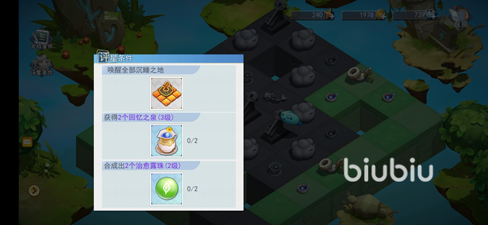 然后就是解鎖地圖,合成回憶之泉,然后采集治愈露珠,這個(gè)時(shí)候的治愈露珠全是一級的你可以先用來解鎖地圖,如此反復(fù),通過回憶之泉采集的治愈露珠去解鎖地圖,記得解鎖玩所有地圖再去合成鑰匙,提前合成就無法達(dá)到三星。