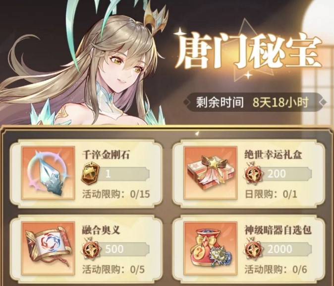 此次還將開放幸運輪盤,輪盤中一共有十二件物品,其中最珍貴的就是神秘禮包和名匠徽記,當(dāng)累計抽取一百次后,可以直接領(lǐng)取到一個名匠徽記,沒有抽中徽記會獲得一些兌換物品,這些物品可以在唐門秘寶中兌換道具。