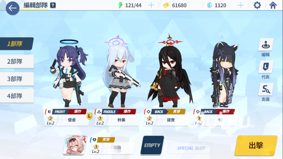 1、在進(jìn)入到進(jìn)入戰(zhàn)斗后,系統(tǒng)會根據(jù)玩家所排列的站位進(jìn)行位置分配。1號位和4號位的位置是在地圖兩遍的位置,這個位置主要是用來承擔(dān)傷害的,因此需要把前排放在這個位置。