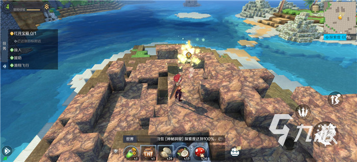 3、地圖上能夠?qū)ふ液芏嗟膶毑?,大家只要雙擊就能夠自動尋路前往了,需要注意的是,有些寶藏會藏在水里和高處,面對這種情況時,大家可以通過墊方塊的方法來獲得寶藏。