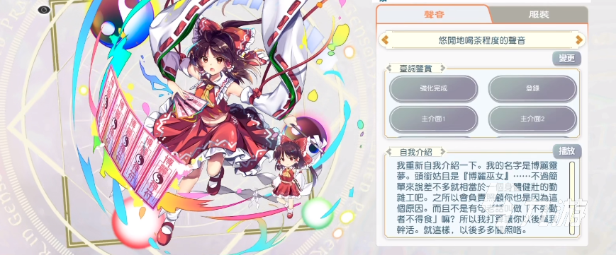 首先是靈夢和魔理沙,這兩位角色的培養(yǎng)價值和可玩性都非常高,更重要的是她們都是可以通過前期抽卡免費獲得的。靈夢和魔理沙分別在主線推圖和紅魔塔中有著精彩的表現(xiàn),尤其是靈夢,她的夢想天生大招可以說是東方歸言錄最華麗也最具有觀賞性的大招之一,因此小編個人認為靈夢是最好玩的角色,使用起來賞心悅目。而魔理沙的擦彈流玩法是最早的一批黑科技玩法之一,能夠讓敵人無限MISS,面對高難度BOSS時既有實戰(zhàn)意義能夠帶給玩家樂趣。