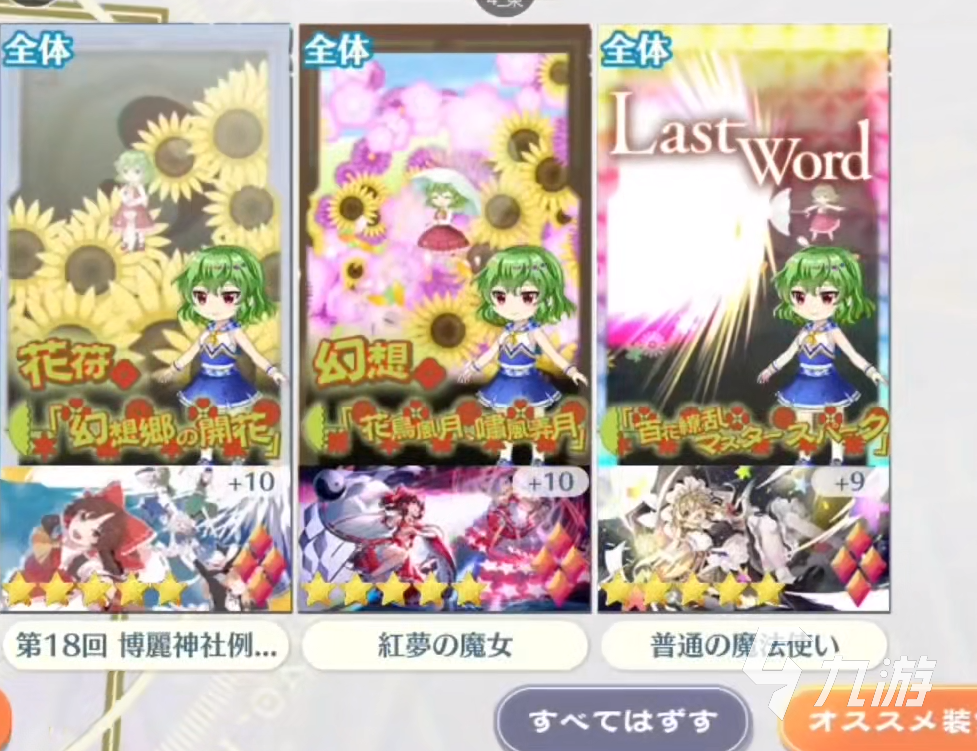 至于其他四個角色,小編推薦玩家?guī)巷L(fēng)屬性的幽香,可以為水屬性和電屬性的角色增加移動速度和攻擊速度,其他的三個格子,小編建議玩家全部帶上風(fēng)屬性的角色就好了!