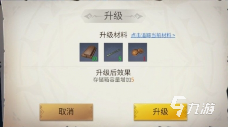 這樣的話小編建議玩家前期多制作一些低成本的箱子,這樣就可以節(jié)省大量的背包空間,對于玩家出門刷怪儲存道具提供了很大的方便,所有的箱子都是可以升級的,玩家可以使用10個松木板、5個青銅釘加銅扣來升級自己的箱子,升級后的箱子可以再給玩家提供5格的容量。