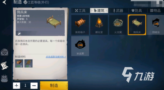 傭兵床這個(gè)建筑物會(huì)在角色等級(jí)15級(jí)的時(shí)候解鎖,還是有一些要求的。那么制作傭兵床會(huì)消耗木材以及亞麻道具,這些道具都是可以通過(guò)采集來(lái)獲得的。制作的需求不是很多,這里建議大家多建造幾個(gè)。
