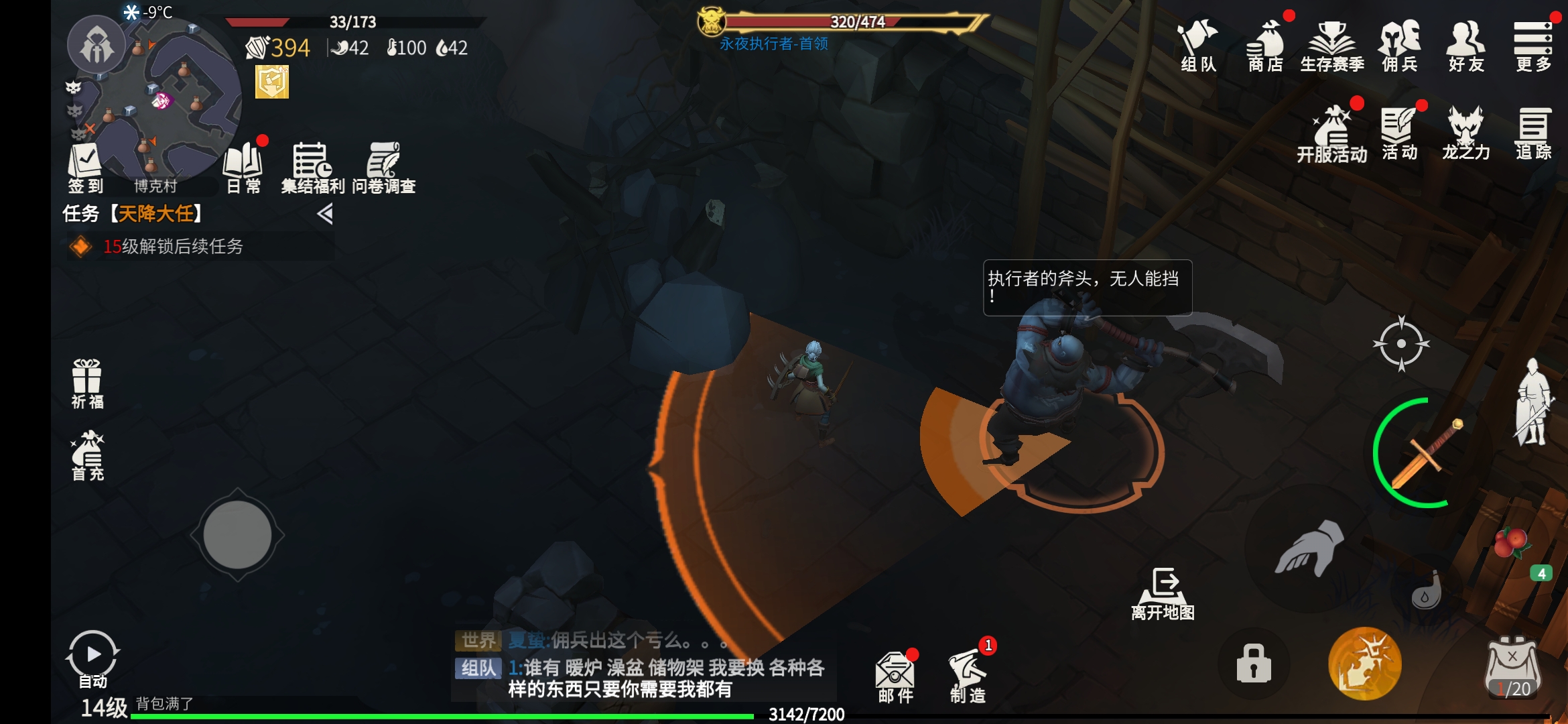 單挑的時(shí)候注意自己的站位,boss初始時(shí)是站立在房子最上角,房子保護(hù)了它的背后,它的攻擊范圍也比較大,我們可以先將boss引出來,然后通過走位在背后攻擊boss就可以無傷擊殺獲得隔熱制劑了。