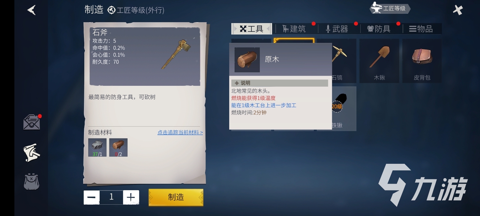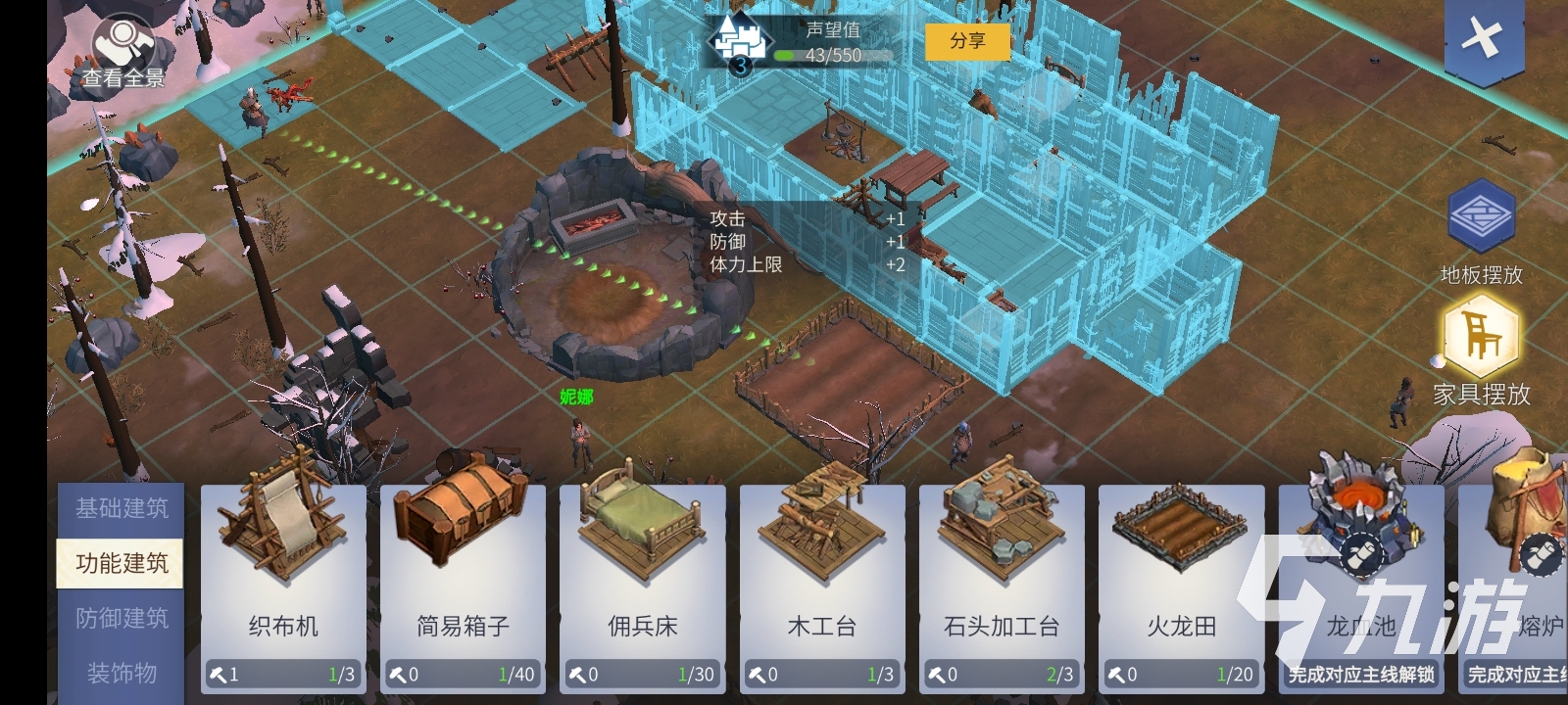 建造完這些基本的建筑之后,玩家還可以給自己的地板進行一個簡單的升級,這樣的話玩家的一級地板就變成了二級地板,還可以將地板鋪設往木屋的周圍,這樣的話玩家可以放置建筑的地點會不斷的擴大,當然玩家出去執(zhí)行任務的時候,如果看到原木的話,一定要注意將原木放在自己的背包里面,盡量多放一些,因為在這之后無論是建造地板木門還是門框都需要原木,這個材料需求量特別的高。