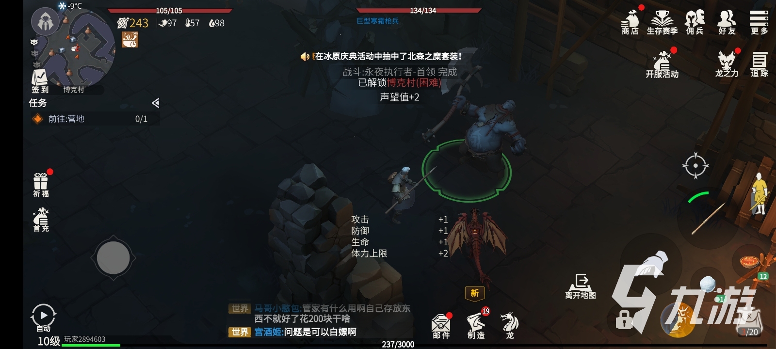 玩家需要去這個礦區(qū)里面挖到足夠的銅礦,大概挖個四五塊的銅礦就能夠勝利地完成任務,然后回到營地了而這些銅礦,也是玩家下來進行建設的關鍵所在,這個時候玩家就需要回到基地里面運用建造這個功能,建造一個自己的石頭加工臺,龍血石,以及一塊火龍?zhí)锾貏e值得一提的是,在上一章孵化的小龍會產生一些龍糞,這個龍糞是這個火龍?zhí)镒罴训氖欠遣牧?,能夠促進里面的植物迅速生長,玩家注意不被燙傷就可以了。