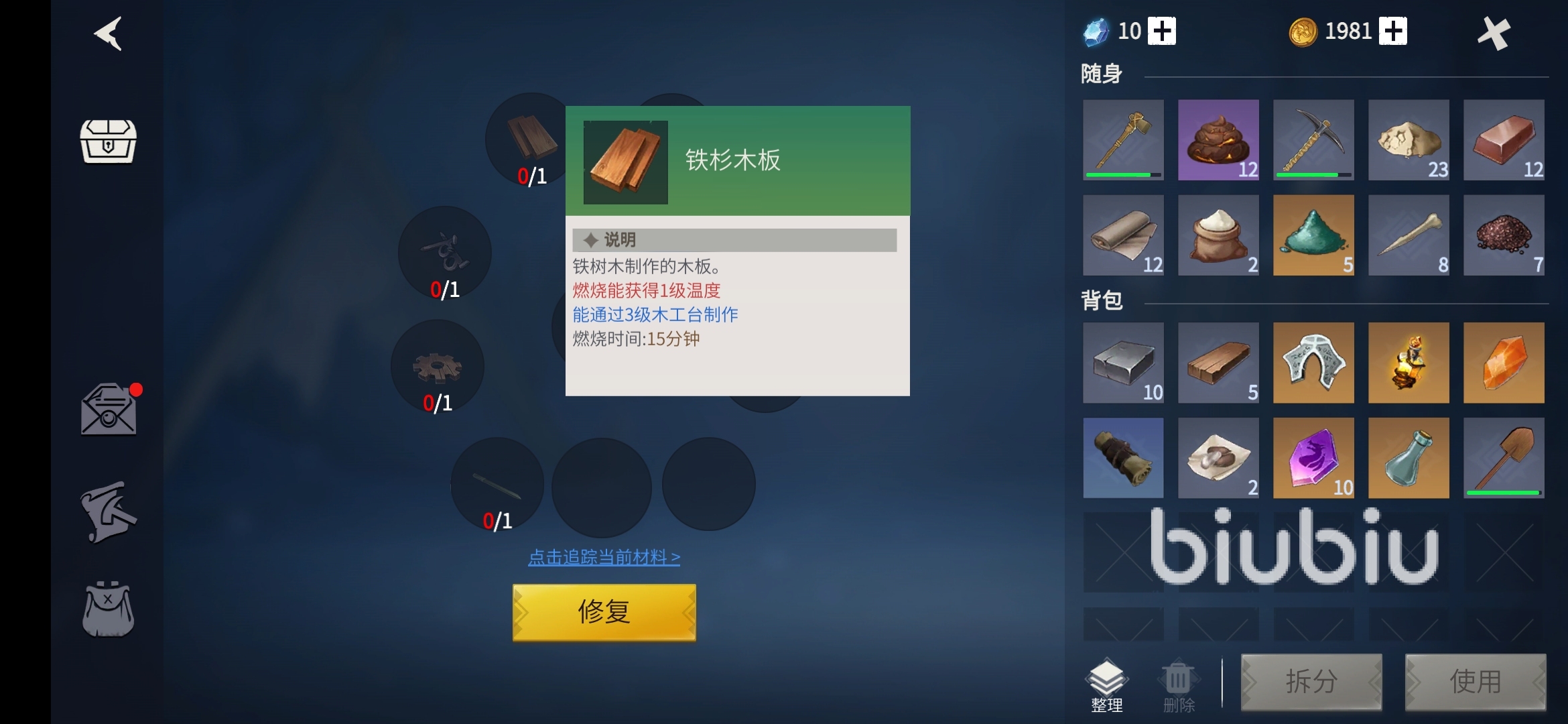 4、鐵杉木板,平時在副本中砍伐收集然后加工就能夠得到。