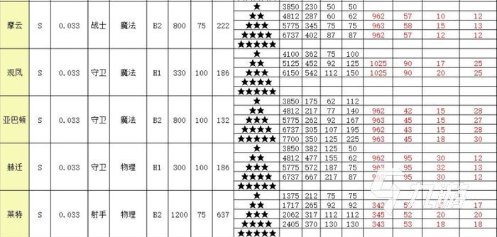 攻擊最高的是s級(jí)別的赫遷攻擊到667,并且還是守衛(wèi)角色血量也來到四星最高六千點(diǎn)的水平,可惜攻速只有三百算的上最低檔了,所以攻擊頻率不是很高只是適合防御,打傷害還是太慢了。