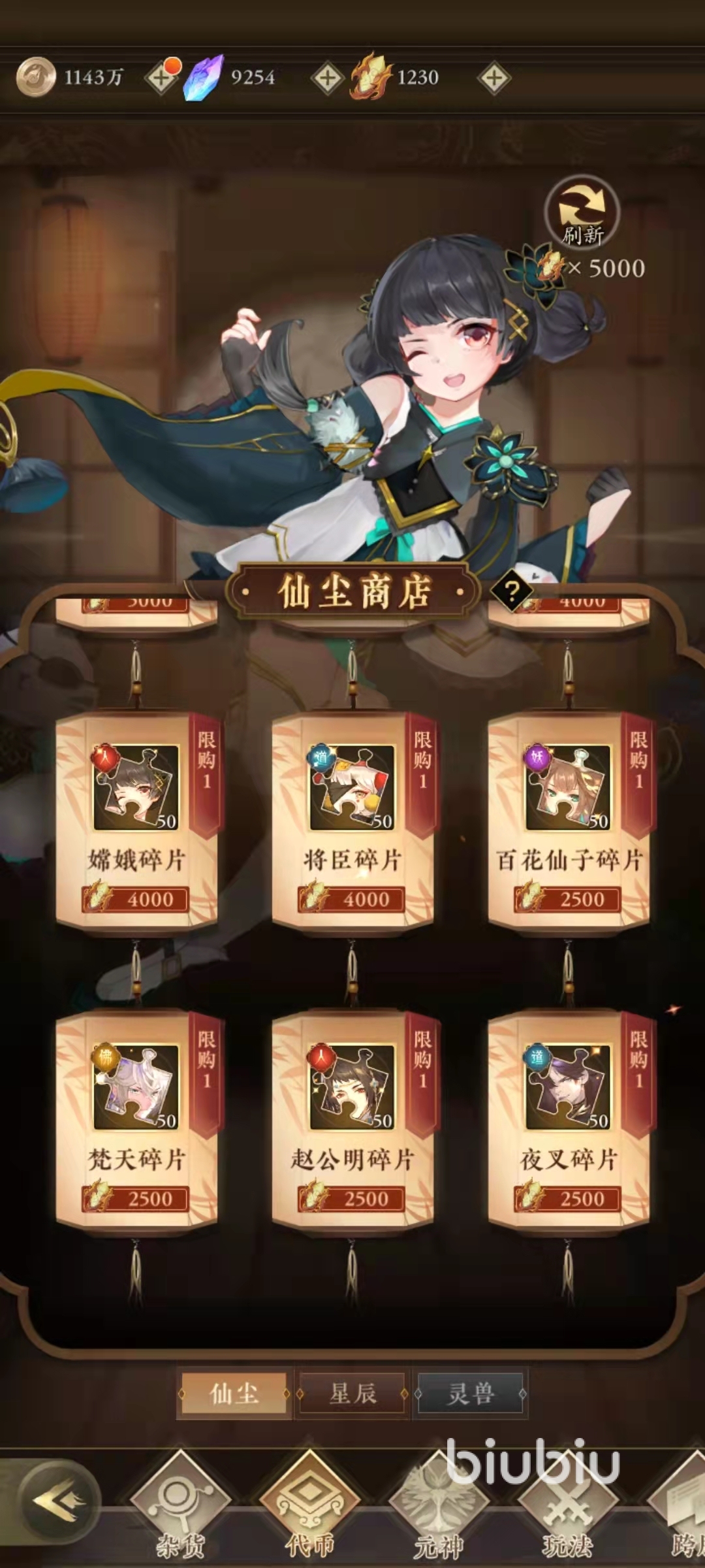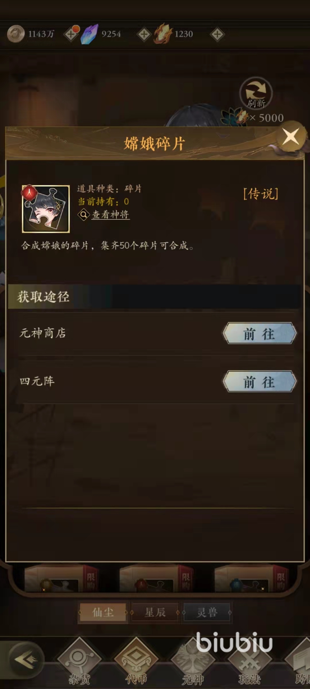 除了元神商店外,還有仙塵商店,逐勝商店等都可以兌換到嫦娥的碎片,仙塵商店中消耗仙緣余塵,可以通過分解低星的神將來獲得,然后購買嫦娥的碎片,進(jìn)而合成嫦娥的整卡。逐勝商店中消耗逐勝徽章來兌換,逐勝徽章可以通過千戰(zhàn)逐勝臺來獲得。