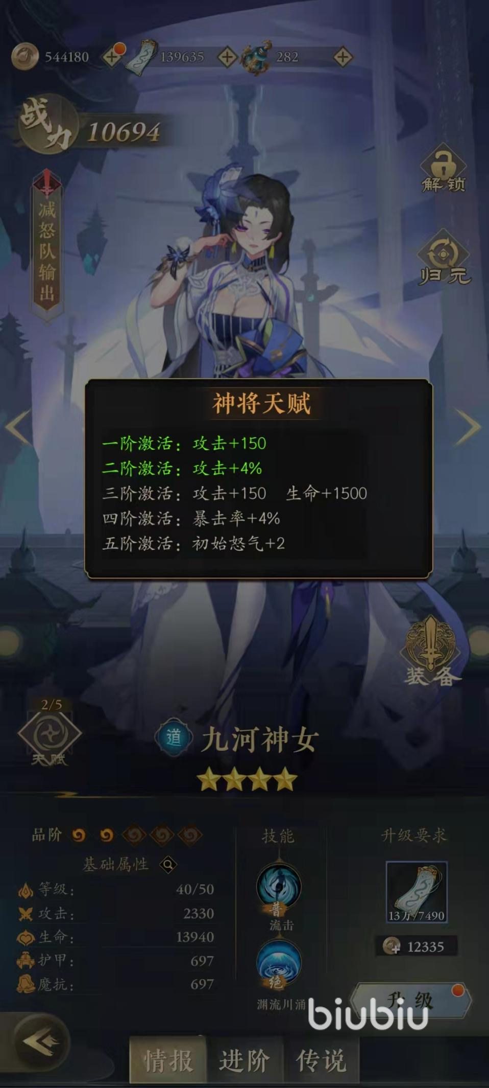 關(guān)于天賦的等級提升其實比較簡單,每個神將的基礎(chǔ)等級是30級,玩家們可以消耗“成長護符”來增長神將的等級,等級拉滿以后可以使用“九轉(zhuǎn)金丹”進行突破,成功突破以后神將的品階就會提高一個級別,而天賦也會隨之解鎖。在第一次突破后,每次的等級上限會提高10級,所以想要將天賦解鎖到五級狀態(tài)神將至少要達到70級才能滿足硬性條件。
