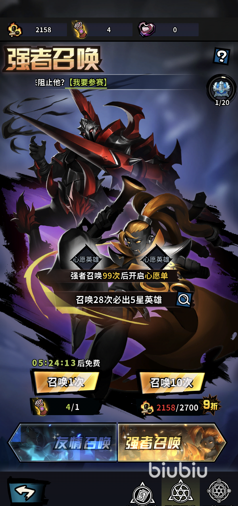 如果玩家連續(xù)29次沒有獲得到五星英雄,那么在第30次的時候系統(tǒng)必將為玩家送上一個五星英雄,可以說這一點也是比較有人性化的。這個英雄召喚卷玩家可以通過做任務(wù)獲取,也可在成長之路進(jìn)行兌換。至于另外一個使用友情點進(jìn)行召喚,這個友情點玩家可以通過與好友每日互贈獲取。