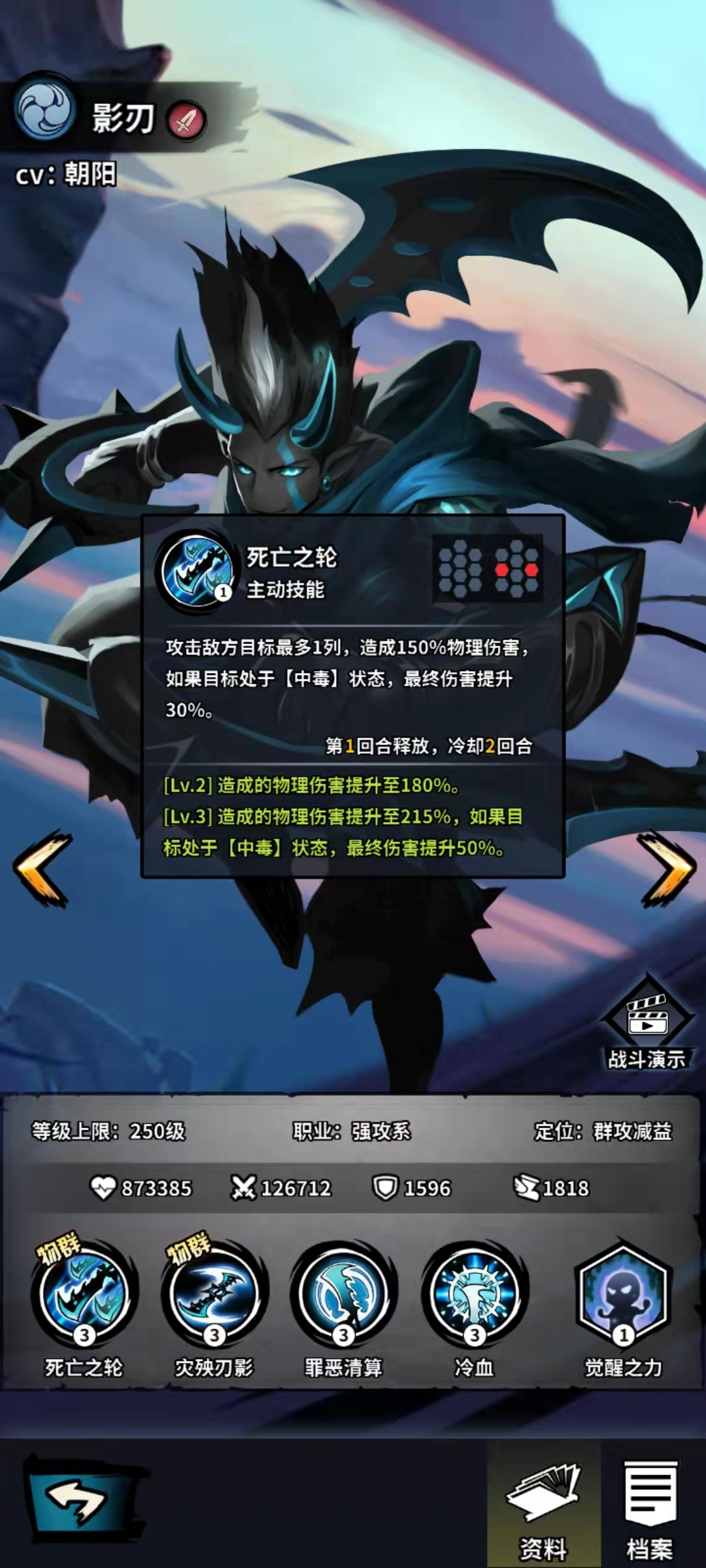 小編選擇的英雄是影刃,離,胖歐,鎮(zhèn)風(fēng),熒,熏,其中影刃是屬于強攻系的英雄,主要的輸出在于自身的被動冷血和必殺技,冷血的效果是可以傷害敵方的前排和中排的所有英雄,并且有幾率附加中毒效果。冷血的效果是在行動之后,都可以為對方隨機一個英雄中毒。中毒是持續(xù)傷害效果,并且是可以疊加的,對付對方的前排肉盾是最好用的。