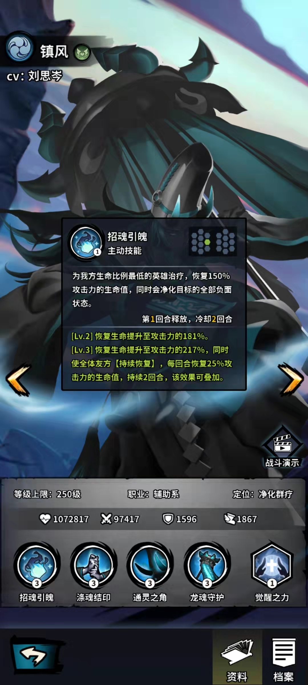 鎮(zhèn)風(fēng)是屬于輔助型的英雄,主要的特點是可以為己方血量最低的一名英雄治療,同時將自身凈化一下。還有就是必殺技可以恢復(fù)最多四名己方英雄的血量,并且為隊友驅(qū)散不良狀態(tài)。
