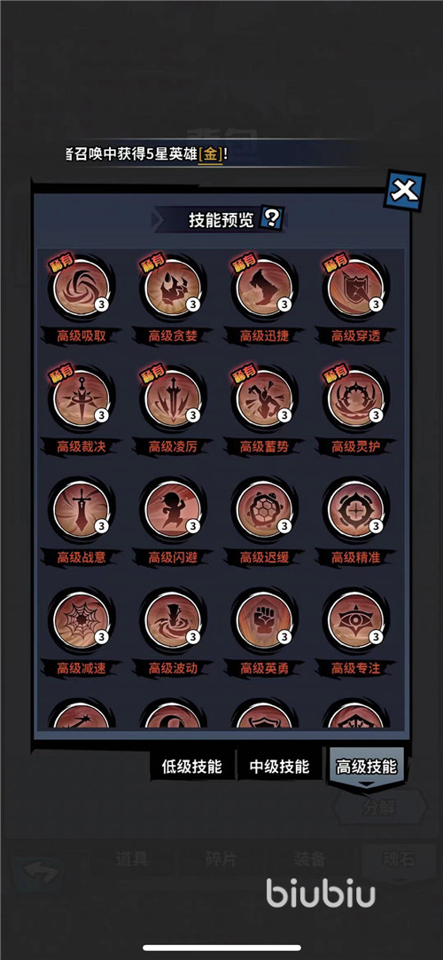 深淵魂石一定帶有一個技能組合,這個組合可能是一個高級技能或者中級+中級或者高級+低級技能。