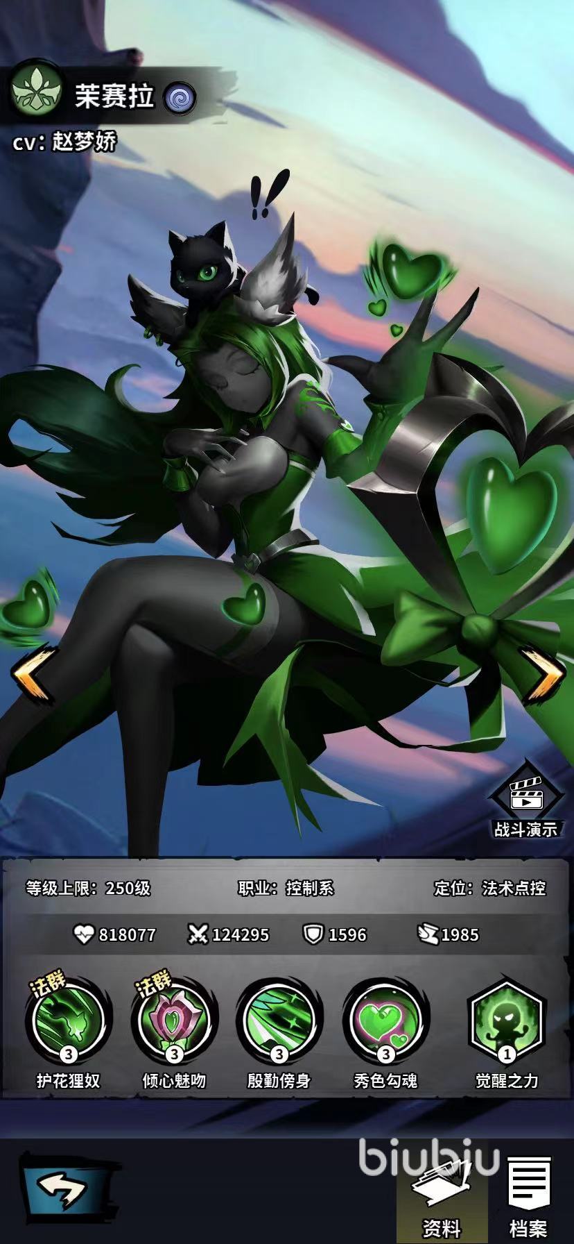 茉賽拉在游戲里的定位是法術(shù)攻擊,他是一名非常強(qiáng)勢(shì)的控制系角色,大家別看他的外觀柔柔弱弱的,但是輸出實(shí)力可是一點(diǎn)都不差,如果能給茉賽拉升到滿級(jí),他的攻擊實(shí)力最少也有12萬(wàn)之多,這可是大多數(shù)輸出角色都無(wú)法達(dá)到的高度。