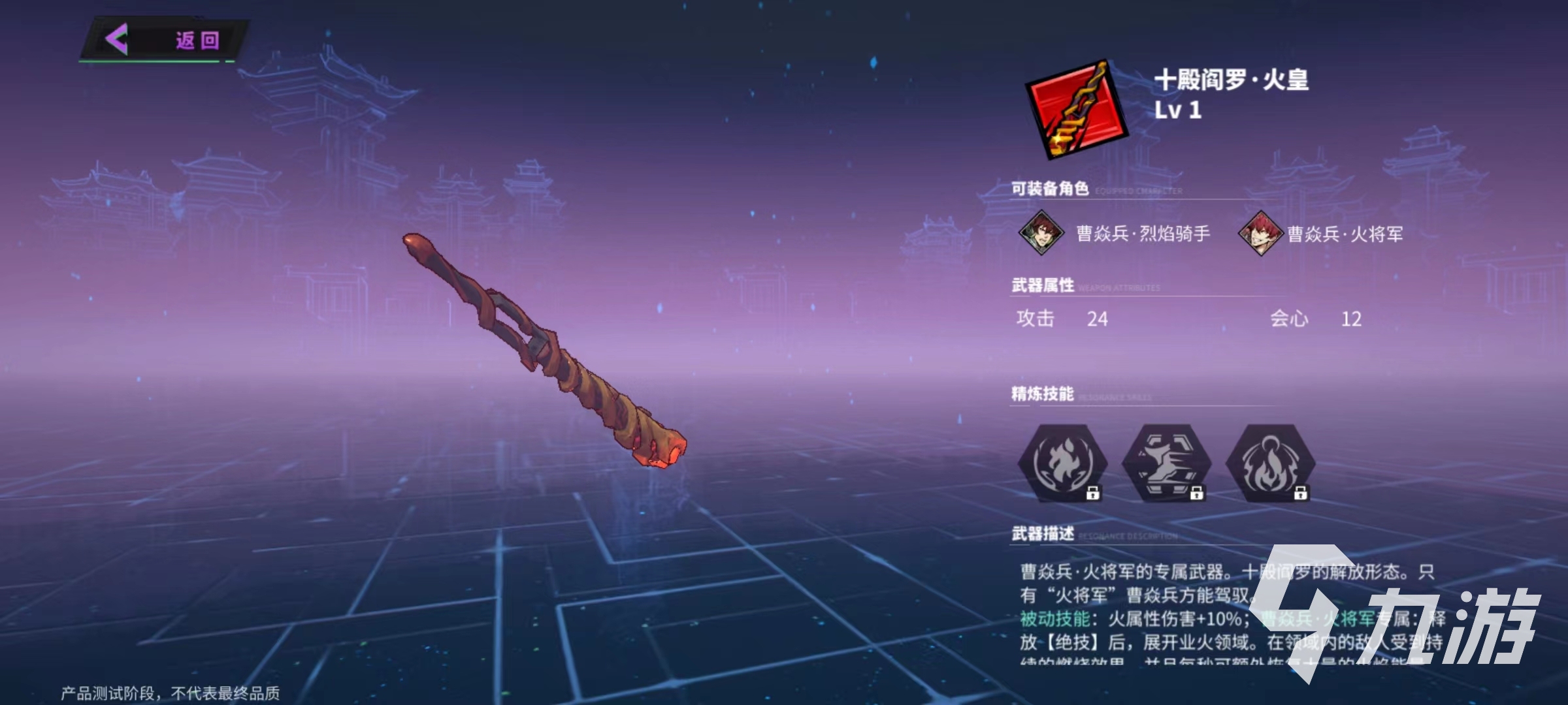 在武器的選擇上,最初可以使用紫色品質(zhì)離火之柱作為過渡,后期更換為炎帝或十殿閻羅。其中十殿閻羅作為專屬武器能夠提高曹焱兵火屬性傷害,并且額外恢復(fù)能量,屬于后期一定要搞到的裝備。靈技搭配上可以選擇焱王領(lǐng)域,湮獄死光和阿鼻業(yè)火。