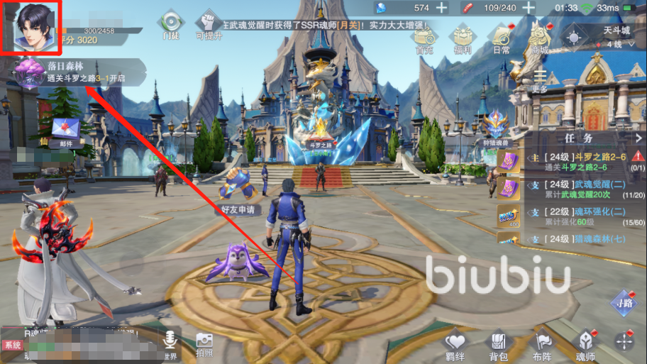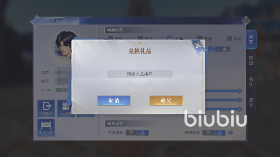 (1)進(jìn)入到游戲中的主頁面,點(diǎn)擊畫面左上角的頭像按鈕,點(diǎn)擊選擇下方的“兌換碼”按鈕,小編會(huì)在圖中為大家標(biāo)注出來位置。