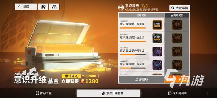 這個獎勵分為基礎以及高級,大家每提升一級成就等級,均可獲得對應的獎勵,將來分為道具與石英砂,其中道具免費石英砂需要付費解鎖。128元總計可以拿到15600石英砂,如果按照性價比來換算的話,其實收益率是要比月卡更高的,不過意識等級提升比較緩慢,再加上128元的價格確實不便宜,所以更推薦有一定經(jīng)濟能力的玩家購買。