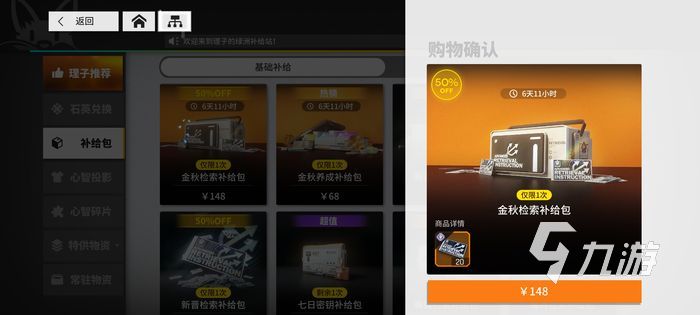 游戲當中一般過節(jié)的時候都專門的禮包,例如這次的國慶佳節(jié)就有著兩款禮包,其中148檔位的可以拿到20抽,換成石英砂就是3000個,性價比方面還是比較不錯的。如果是打算氪金拿up角色,購買這個要比直沖更劃得來。