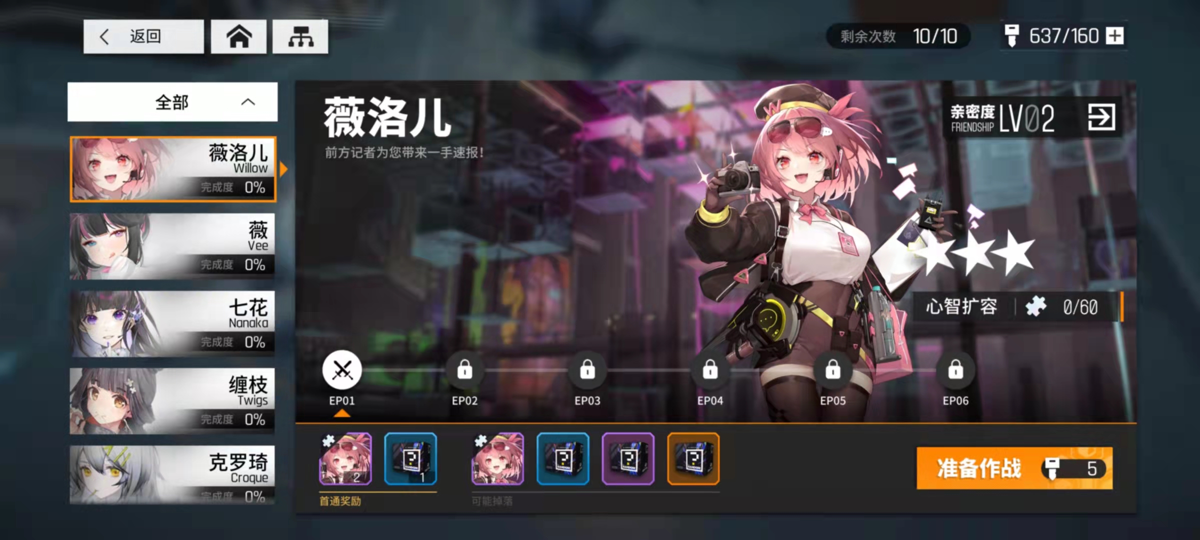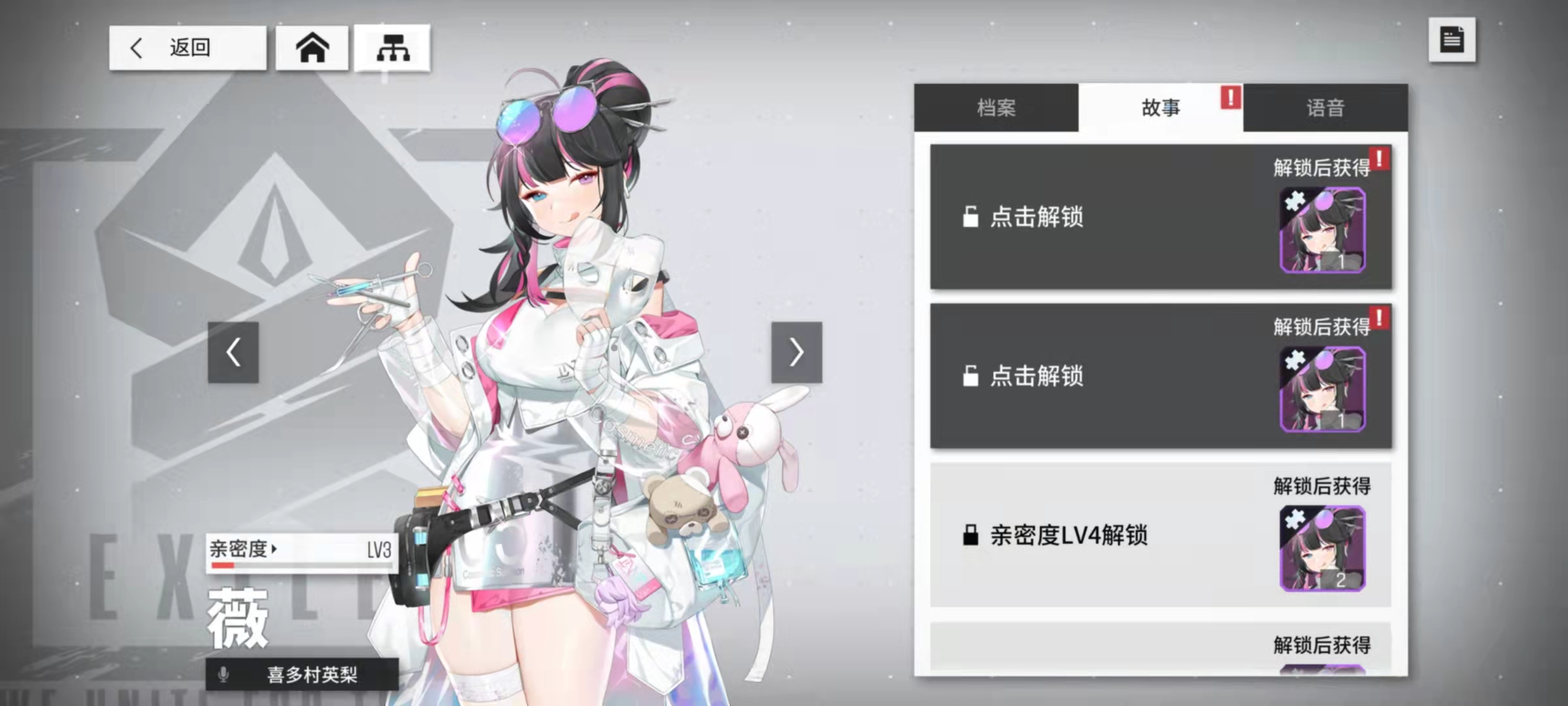上面介紹的副本拿到的好感度道具,我們可以在角色界面點(diǎn)右上角第一個(gè)突變,然后選擇故事。這里會根據(jù)好感度等級解鎖碎片,總計(jì)可以獲得15枚,同樣是只能夠獲取一次。