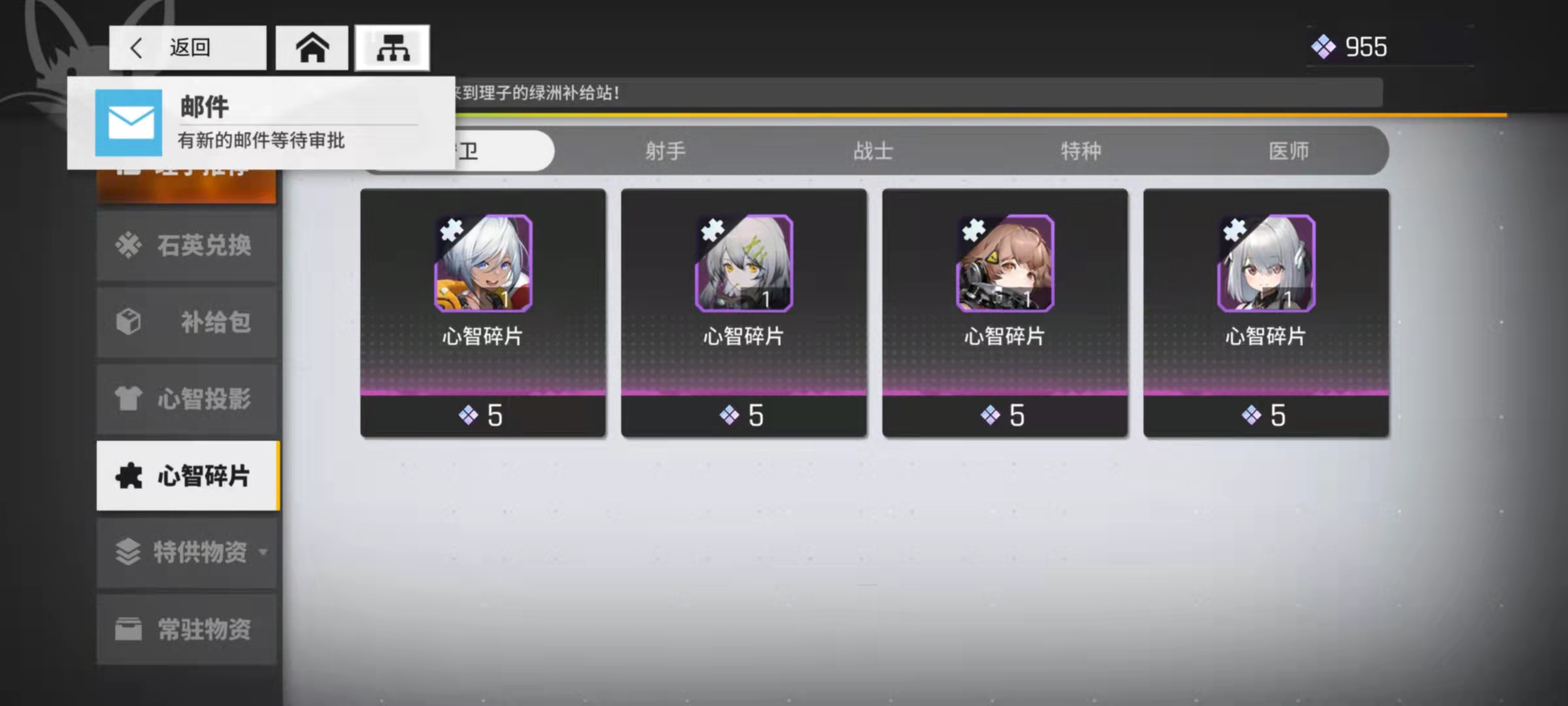 游戲但這個(gè)我們的抽到的重復(fù)角色,會被轉(zhuǎn)化為心智構(gòu)建,在心智碎片里面可以兌換我們已經(jīng)獲得的角色碎片,即使是初始三星角色也是可以直接兌換的。個(gè)人建議大家只兌換三星角色,畢竟大部分2星角色強(qiáng)度是遠(yuǎn)不如初始3星的。這里面的單個(gè)角色碎片最多兌換25枚。