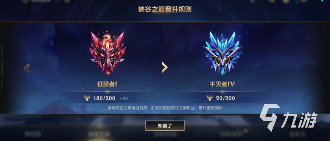 第一個前提條件表明了峽谷之巔的門檻蘭非常高,實際上推出峽谷之巔排位賽的目的就是為了高分段玩家擁有更好的游戲環(huán)境,所以玩家要是想玩峽谷之巔,和國內(nèi)一線玩家扳一掰手腕,就快努力上分到鉆石吧。