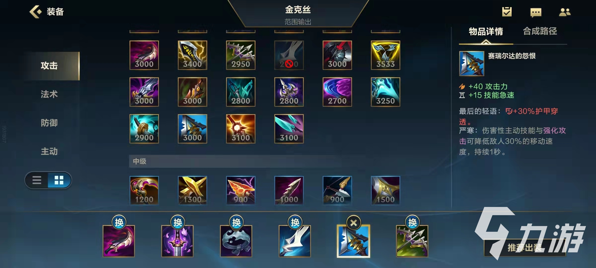 poke流金克斯實(shí)際走的就是穿甲的路線,穿甲裝備相比于金克斯傳統(tǒng)的暴擊裝備更便宜,成型期也來得更快。除了大量的穿甲裝備以外,魔宗是金克斯的核心裝備,既加攻擊力又加藍(lán),這樣金克斯就沒有缺法力值的后顧之憂了。附魔裝備的選擇比較多,對(duì)手控制不多的時(shí)候可以水銀換金身。