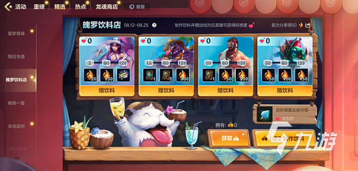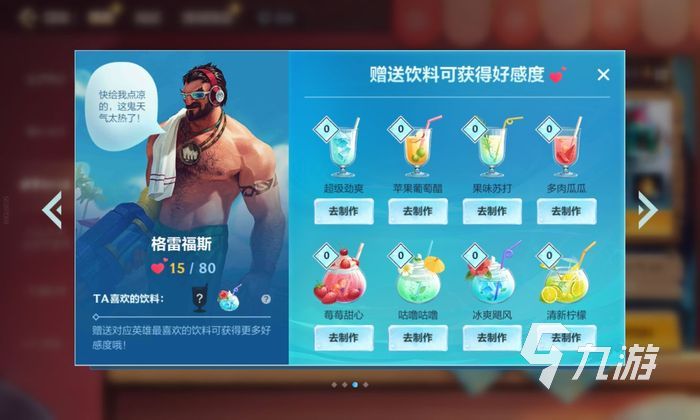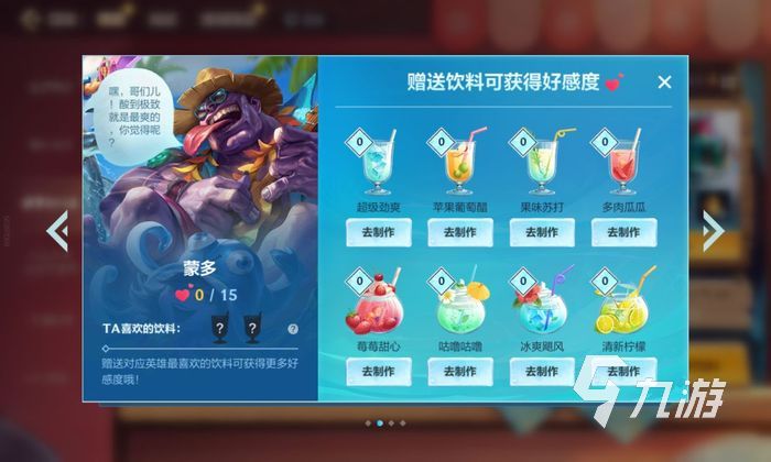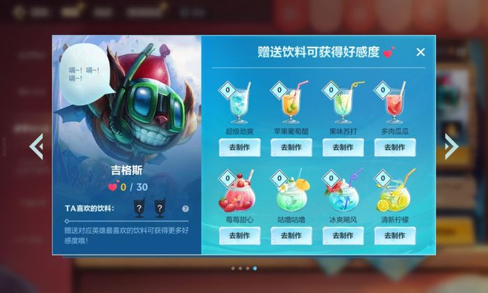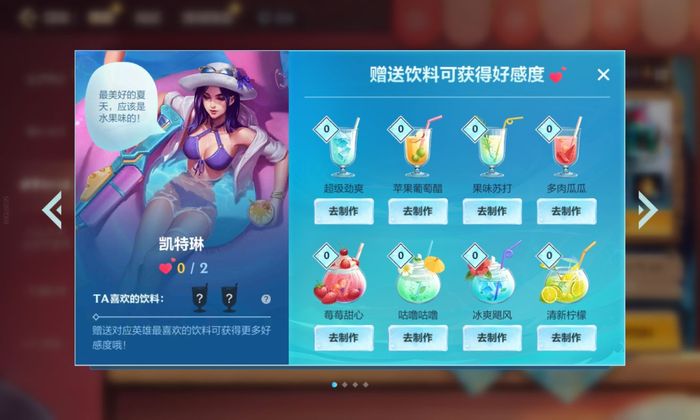 當我們把飲料贈送給對應(yīng)的英雄后,我們就可以和這個英雄提高好感度,每杯普通飲料最少可以+2好感度,每杯高級飲料最少可以+10好感度。我們要注意一下每個英雄都有最喜歡的2種飲料,贈送他們最喜歡的高級飲料,可以獲得更多好感度哦。