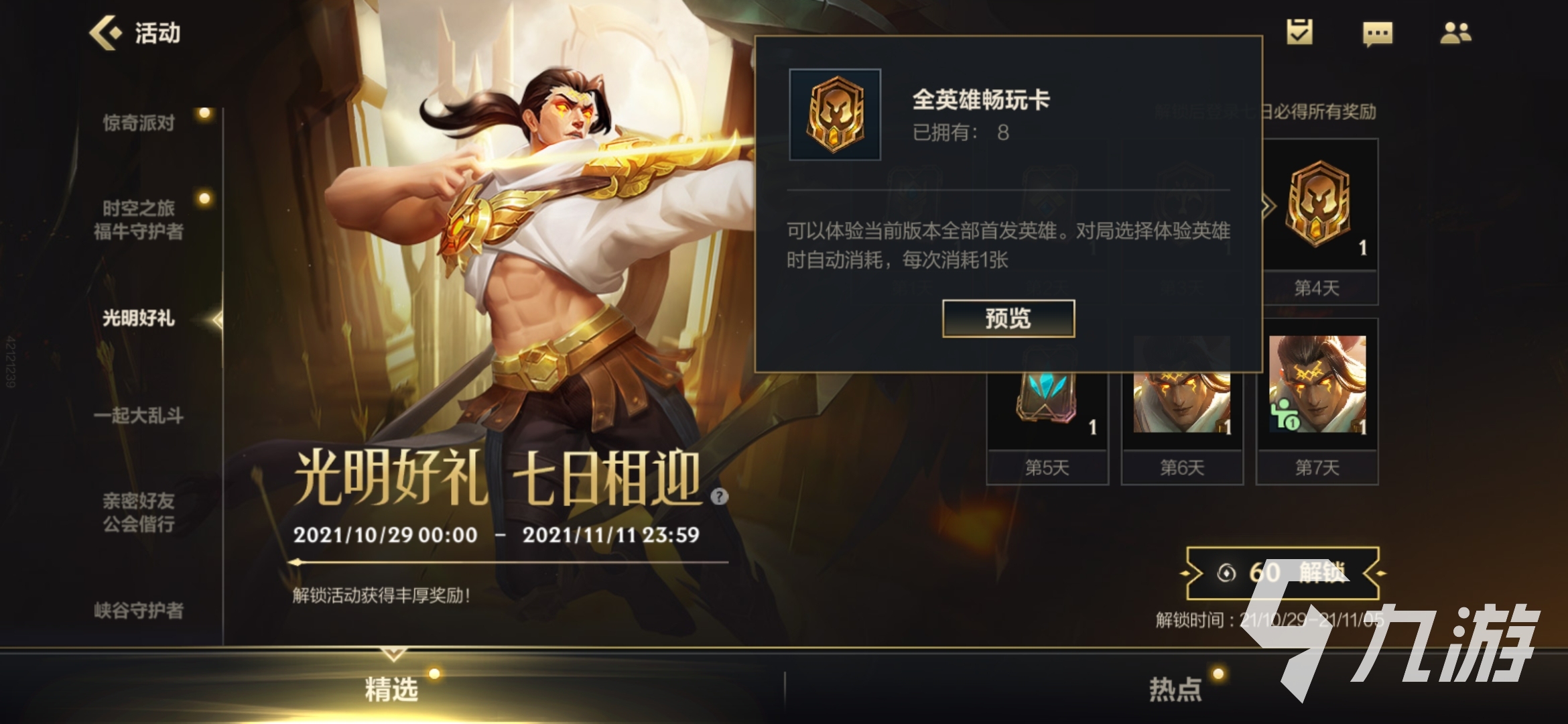 這次的光明好禮,七日相迎的活動(dòng)時(shí)間是從10月29日到11月11日的,活動(dòng)的時(shí)間同樣是非常長(zhǎng)的,所以小伙伴不用擔(dān)心完成不了的問(wèn)題。這次的活動(dòng)是可以通過(guò)不斷的簽到來(lái)獲取各種各樣的道具,維魯斯的蒼穹之光皮膚皮膚以及這款皮膚所對(duì)應(yīng)的專屬姿態(tài)效果的。
