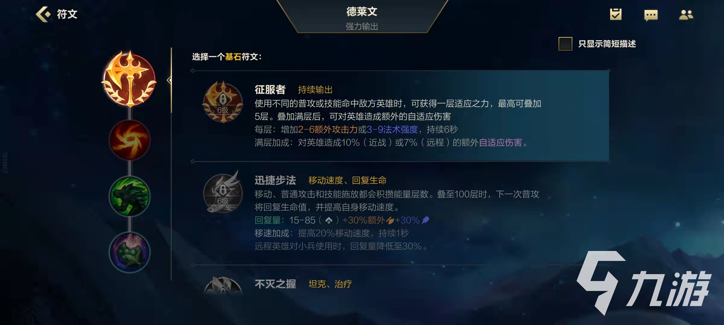 可見征服者對(duì)玩家持續(xù)輸出能力提升明顯,滿層征服者可為玩家提供總計(jì)10-30點(diǎn)額外攻擊力或者15-45點(diǎn)法術(shù)強(qiáng)度,以及10%和7%的額外傷害,不過對(duì)觸發(fā)條件相對(duì)于其他符文要難一點(diǎn),需要普攻和技能一共5下輸出才能疊到滿層。