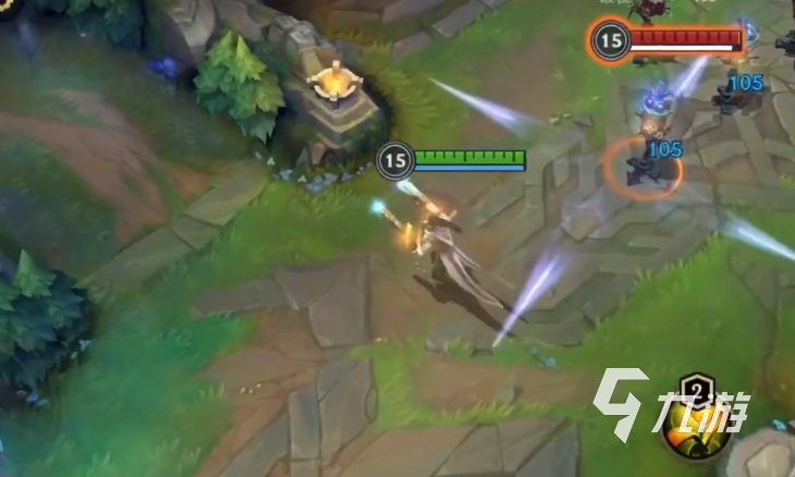5.Q閃:就是在施放出Q技能的同時接上閃現(xiàn),此時閃現(xiàn)并不會改變掉Q技能的施放路線,但是卻可以改變自己的位置,Q閃推薦用在追擊殘血敵人的時候。