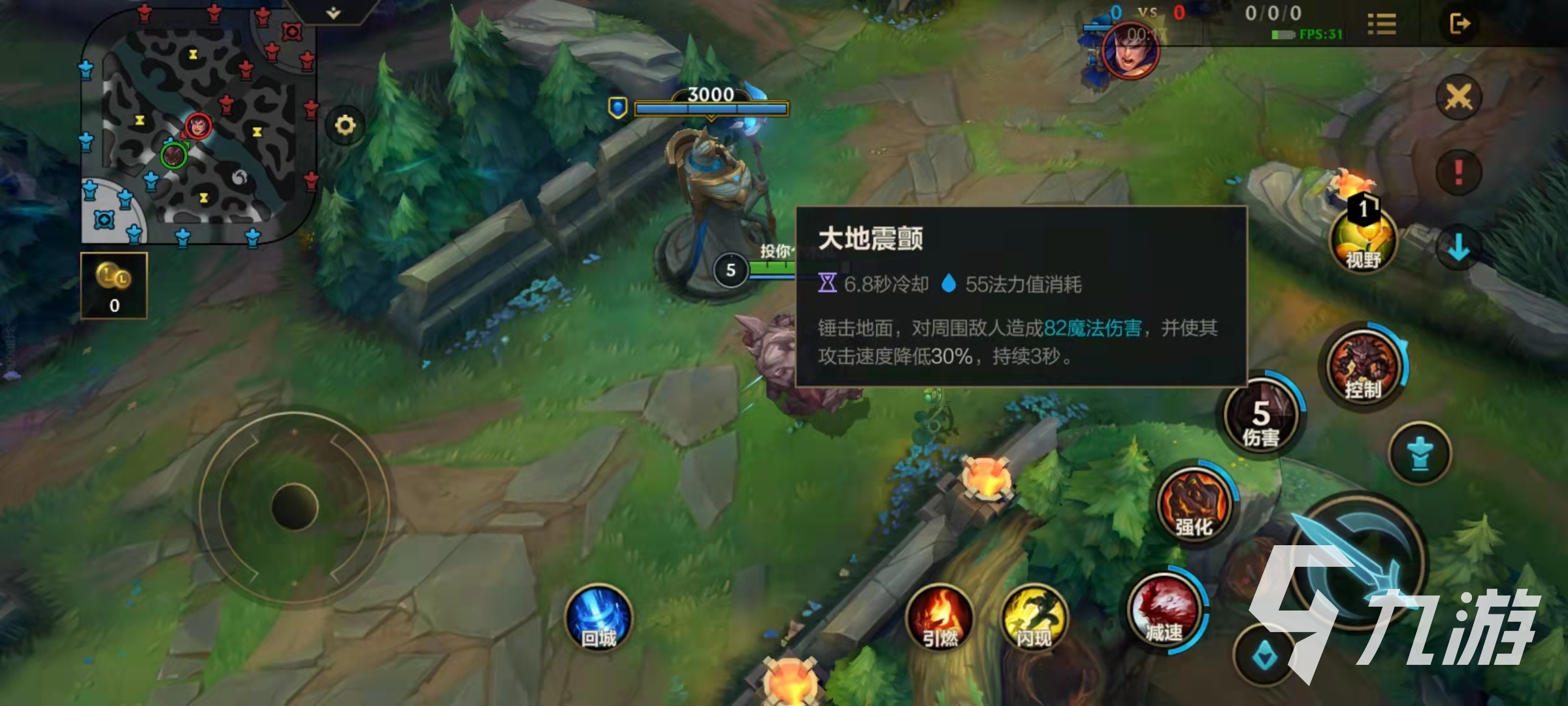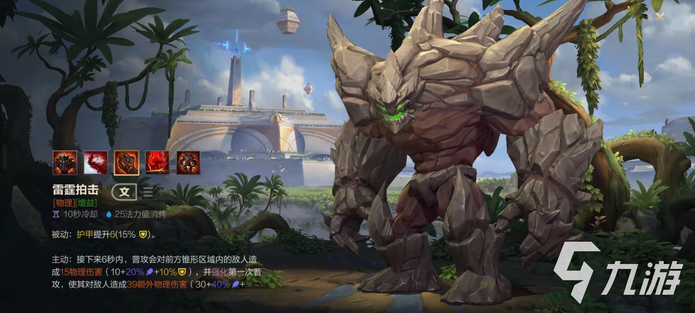二技能雷霆拍擊,被動(dòng)效果是提升石頭人的護(hù)甲,主動(dòng)效果是在使用之后的六秒內(nèi),石頭人的普攻會(huì)伴隨著范圍傷害,第一次普攻傷害更高。這個(gè)技能冷卻時(shí)間略長(zhǎng),但是魔法消耗比一技能低一些,可以經(jīng)常使用。三技能大地震顫,效果是石頭人錘擊地面,對(duì)周圍的敵人造成魔法傷害,同時(shí)降低攻擊速度。這三個(gè)技能熟悉了,就可以開始石頭人上路的套路了。
