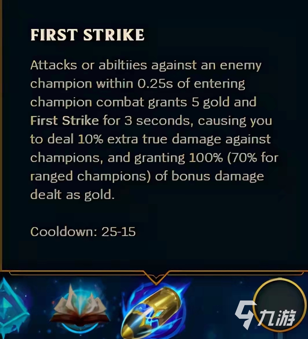 先攻效果:持續(xù)期間,玩家對(duì)該名英雄的普攻或技能將造成12%的額外傷害,并且將額外傷害的100%(遠(yuǎn)程為70%)轉(zhuǎn)化為金幣。