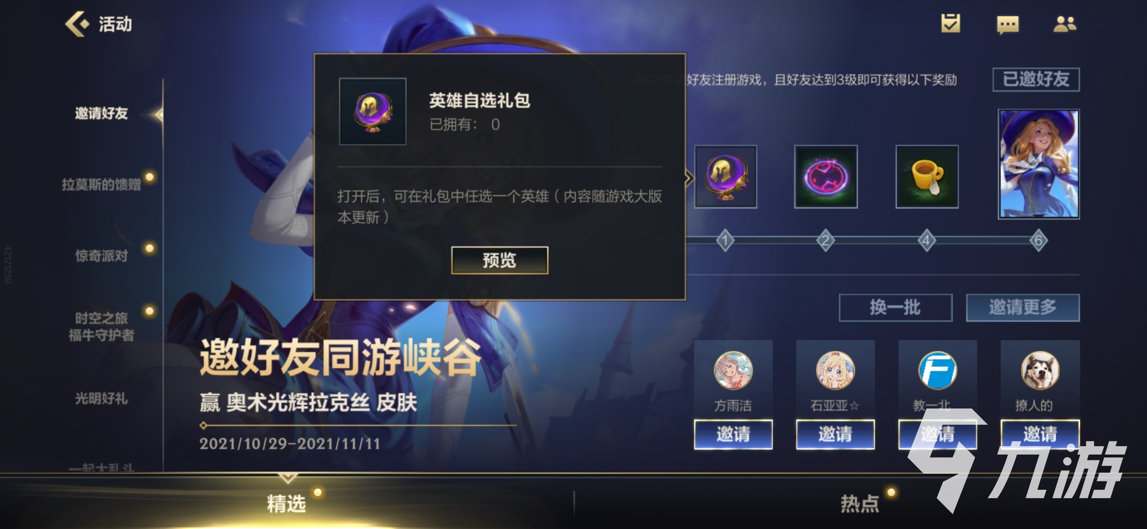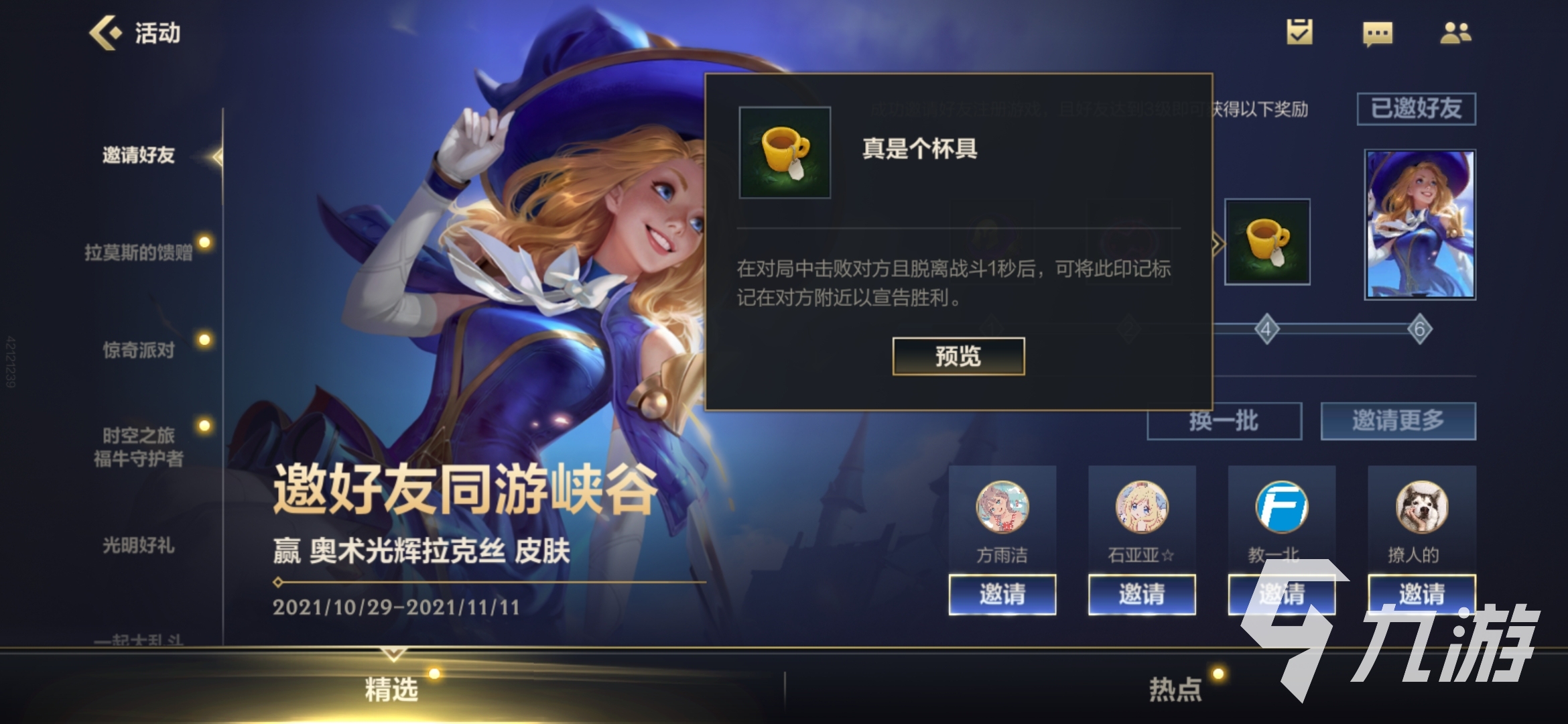 這次的奧數(shù)光輝皮膚皮膚活動的持續(xù)時間是從10月29到11月11日的,活動時間還是非常長的,幾乎是有著兩個周的時間的。活動中,小伙伴需要邀請好友來注冊英雄聯(lián)盟手游的賬號,這樣我們作為邀請人就可以獲取獎勵了,這便是這次的活動的主要參與方式。