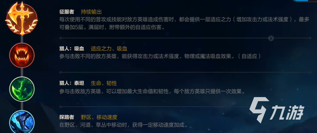 在穿甲流潘森的天賦方面,主要是選擇征服者。征服者可以配合穿甲流潘森的W技能迅速疊滿。第二個可以選擇獵人的吸血。獵人的吸血可以為穿甲流潘森提供不錯的自適應(yīng)吸血效果。對于潘森這種高爆發(fā)的英雄吸血十分適合。