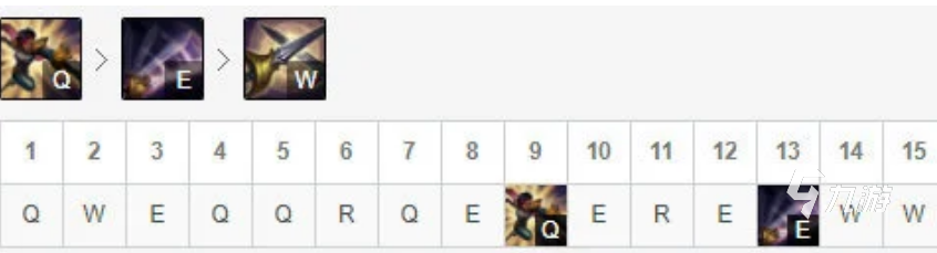 Q技能是劍姬的主要消耗技能,可以使劍姬位移一段距離并且對單個敵方造成傷害,E技能是劍姬的主要輸出技能,能夠強化兩次普通攻擊。