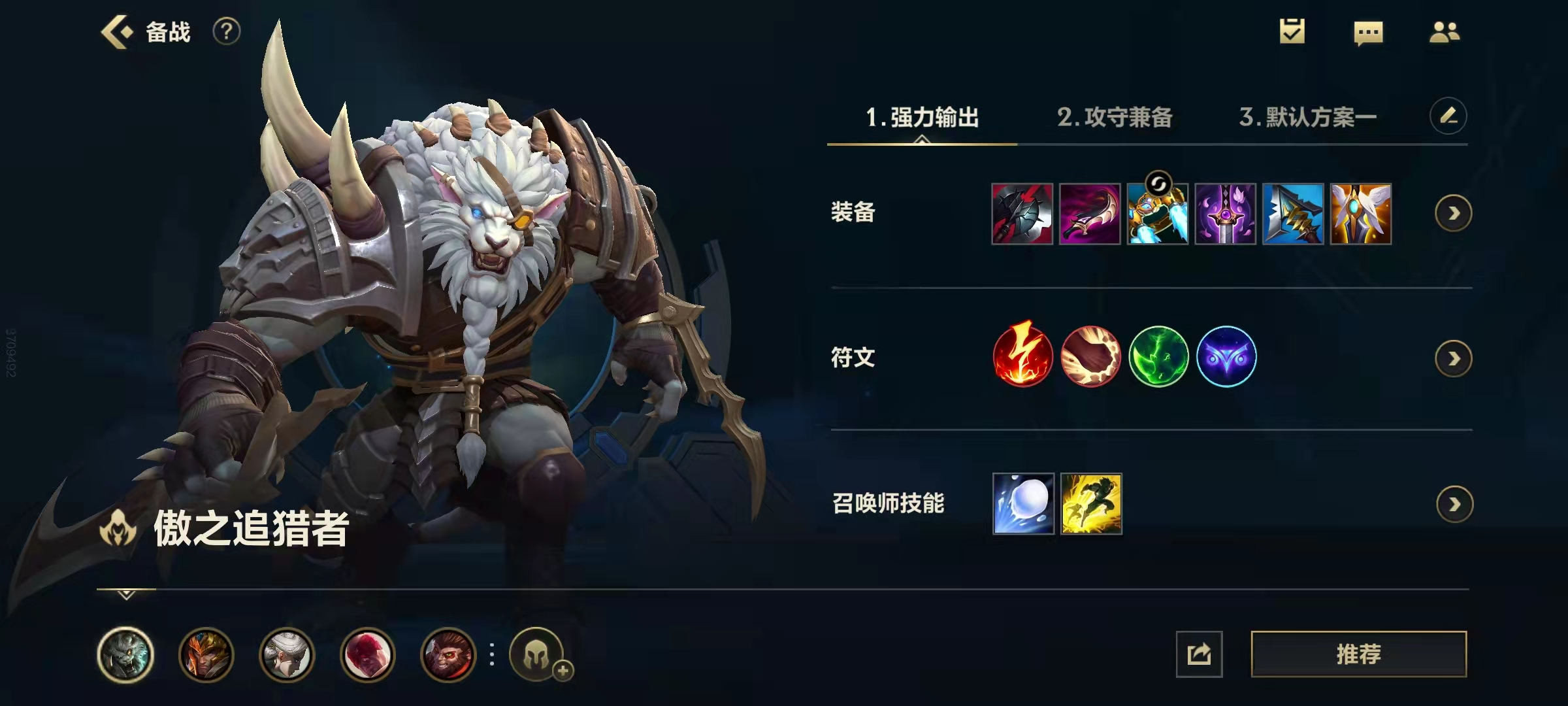 獅子狗名字是傲之追獵者,在游戲開局前優(yōu)選點燃與閃現(xiàn),前期走單人路時可以進行對拼,獅子狗的基礎傷害很高,熟練度提升以后單殺敵人的幾率很高,閃現(xiàn)能夠增強獅子狗的機動性,追殺或逃跑都比較有效。主天賦方面電刑或征服者,對線脆皮英雄時選擇電刑能夠加大秒殺幾率,征服者更適合對線較肉的英雄,利用靈活的機制對敵人造成持續(xù)輸出。