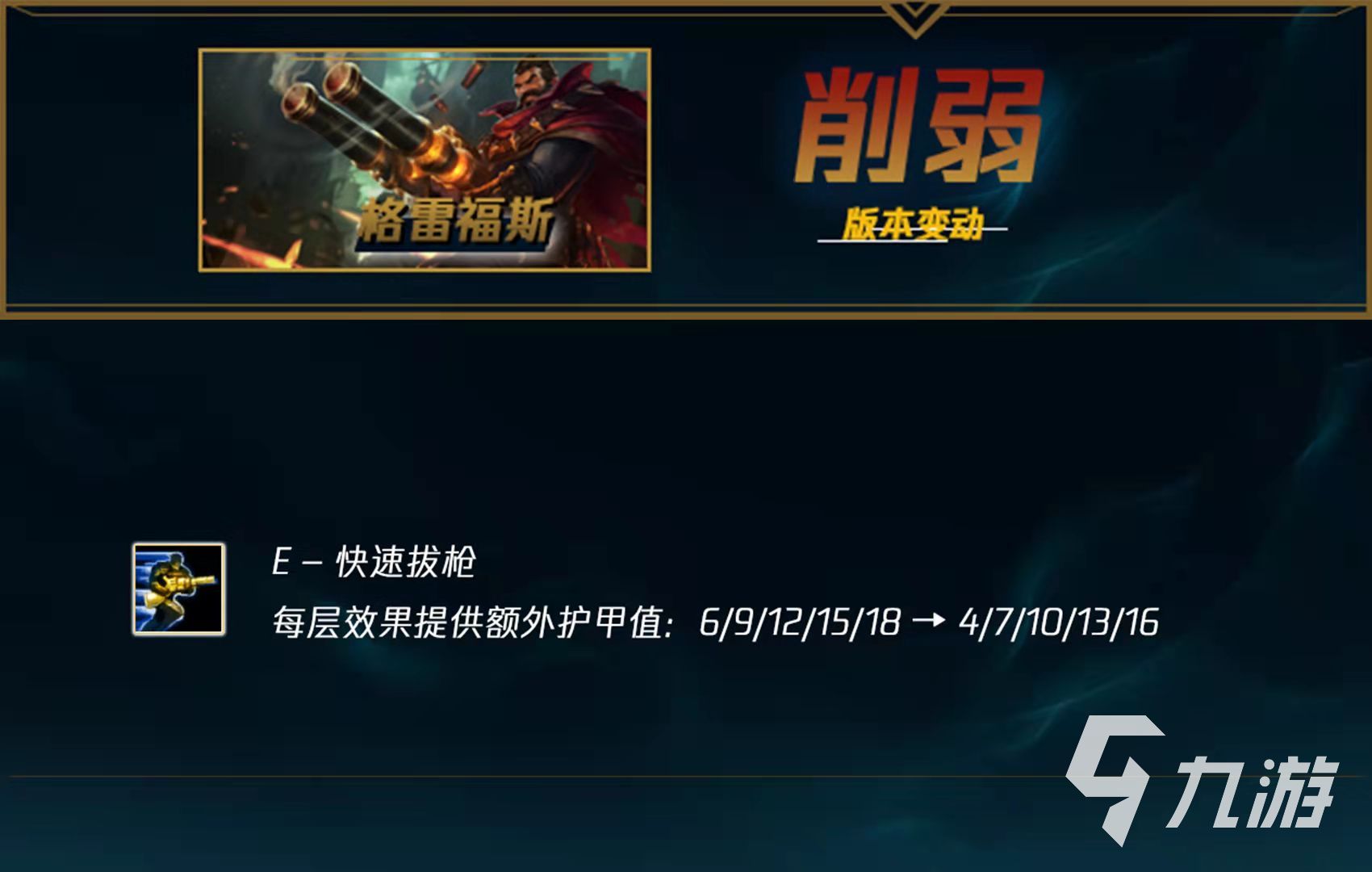 男槍的輸出非常高,但是在E技能滿護(hù)甲之后男槍傷害高的同時還非常肉,這下削弱了E技能的護(hù)甲加成,無論是中單還是打野,男槍遇到AD英雄將更加乏力。