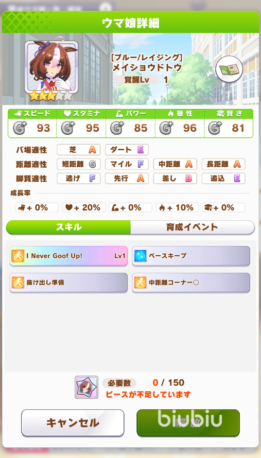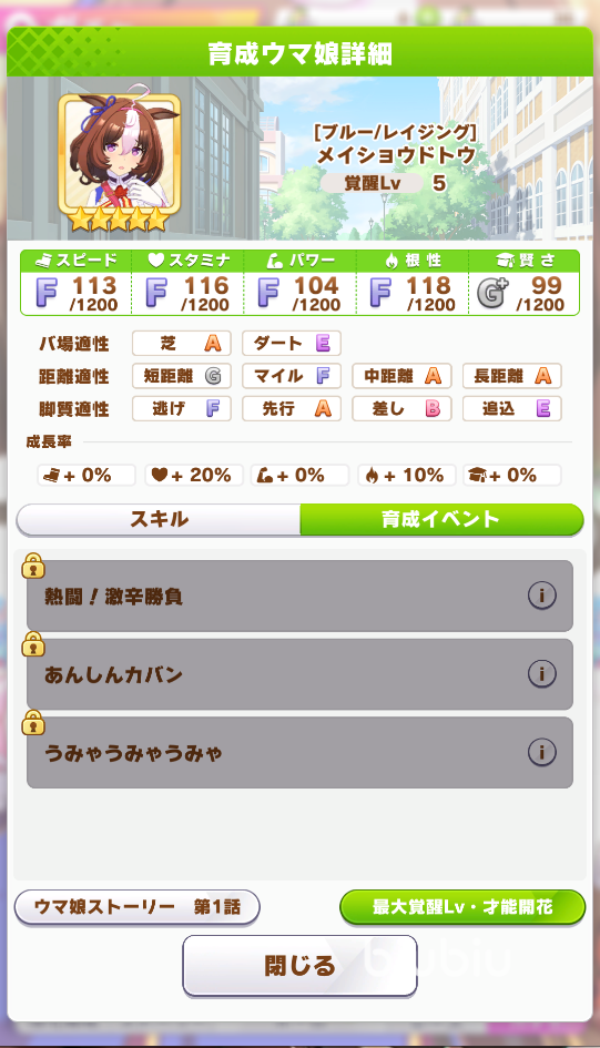 但是由于得兼福來本身的腳質(zhì)適應(yīng)性更偏向于先行,因此選擇差行或者追馬的話對屬性要求會更高一點,大家在培育時要重點考慮這一點,提高馬娘的耐力和力量。