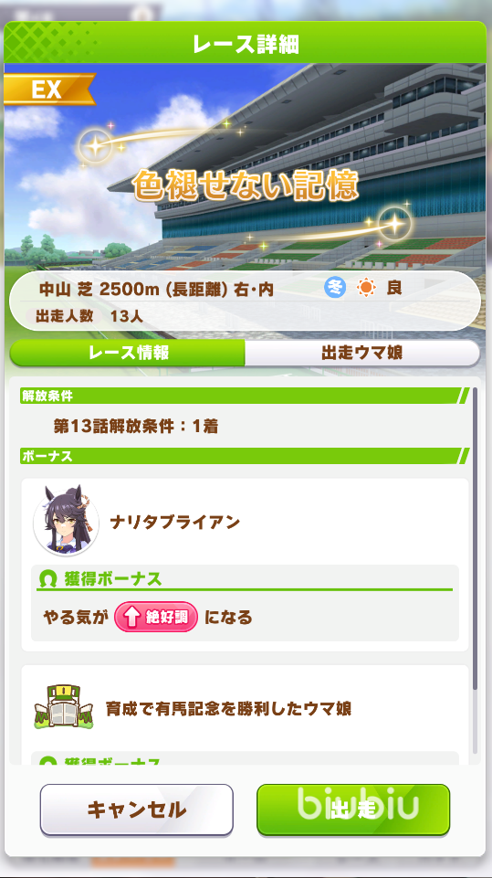 美浦波旁傳奇賽顧名思義,在該場(chǎng)比賽中我們需要選擇自己已經(jīng)培育好的馬娘角色與美浦波旁進(jìn)行同臺(tái)競(jìng)技,并根據(jù)最后的比賽成績(jī)獲得對(duì)應(yīng)成績(jī)的美浦波旁角色碎片,第一名獲得的碎片最多,且只有馬娘成績(jī)?yōu)榍叭麜r(shí)才會(huì)解鎖碎片。而在美浦波旁傳奇賽中,馬娘美浦波旁的培育評(píng)級(jí)為A級(jí),因此我們需要選擇一個(gè)A級(jí)的馬娘或者說(shuō)B級(jí)中非常強(qiáng)力的馬娘才能夠穩(wěn)得第一。