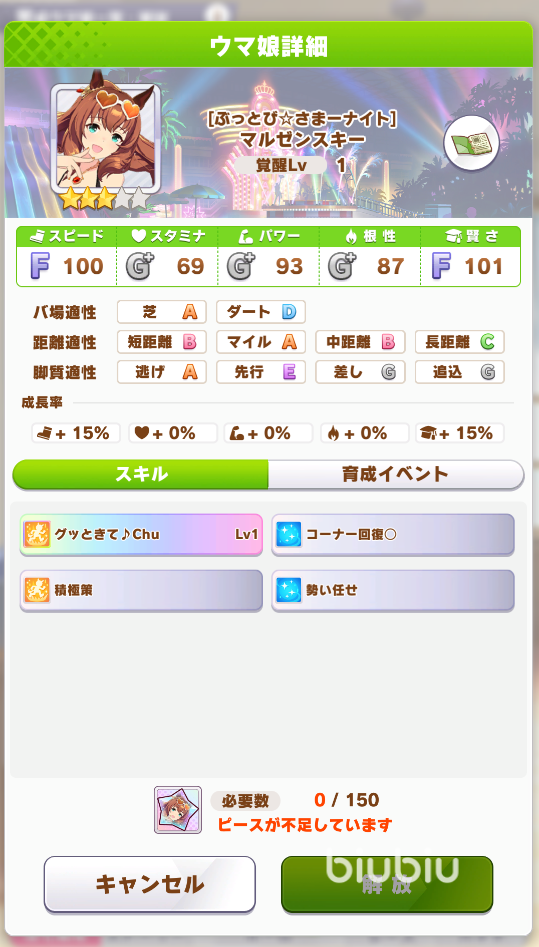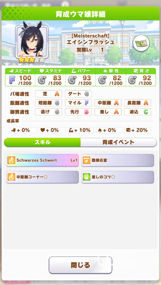 最后是馬娘角色榮進(jìn)閃耀,榮進(jìn)閃耀最大的特點(diǎn)就是培育難度低,培育過程中基本上沒有什么負(fù)面事件出現(xiàn)。榮進(jìn)閃耀是目前賽馬娘上手難度最低的馬娘角色,這一特點(diǎn)使得她在中低端競技場對局中有著不錯(cuò)的發(fā)揮,拿來吃低保再合適不過了。